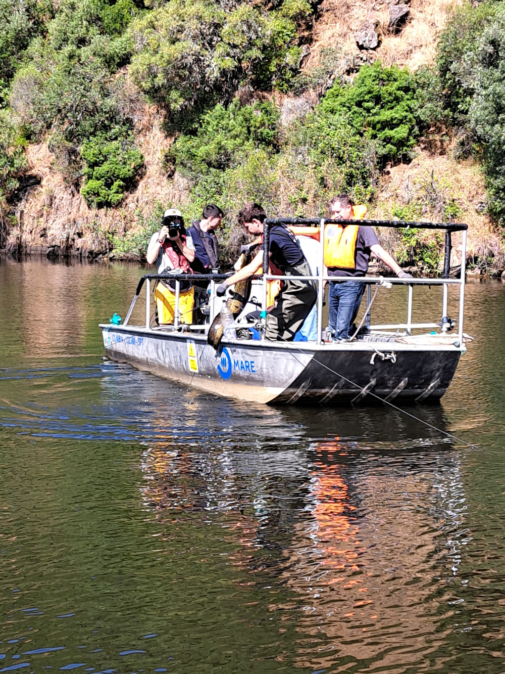 After two days of institutional meetings, the group moved to the municipality of Vila Velha de Ródão, whose municipal administration funds the project, where the educational activities carried out by MARE - Centro de Ciências do Mar e do Ambiente were presented and visits were made to some economic activities that have begun to use catfish for commercial purposes to stimulate the creation of a fishing supply chain. In particular, some restaurants that serve dishes made with Silurus glanis and a canned fish producer that includes the alien predator in its cans were highlighted. In conclusion, the visitors, including director Luca Marello representing the Cozie Alps Parks, attended a fishing session organized within the Parque Natural do Tejo Internacional where MARE, the Institute for Nature Conservation and Forests, and some local fishermen caught several catfish individuals, including one over 2 meters long.
