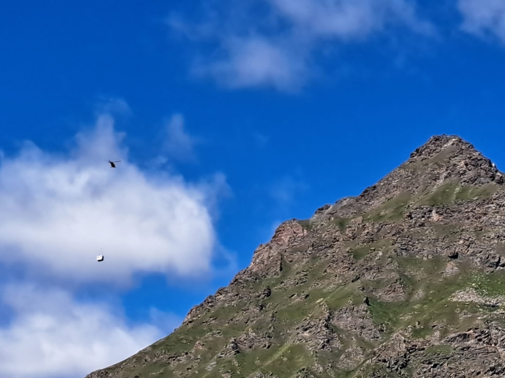 Sulla Strada del Colle della Vecchia, effettuata la parziale sistemazione della massicciata per garantire l'accesso ai mezzi operativi, proprio ieri sono state trasportate con elicottero le strutture e le attrezzature necessarie per l'installazione di reti e pannelli e l'avvio delle fasi di disgaggio.