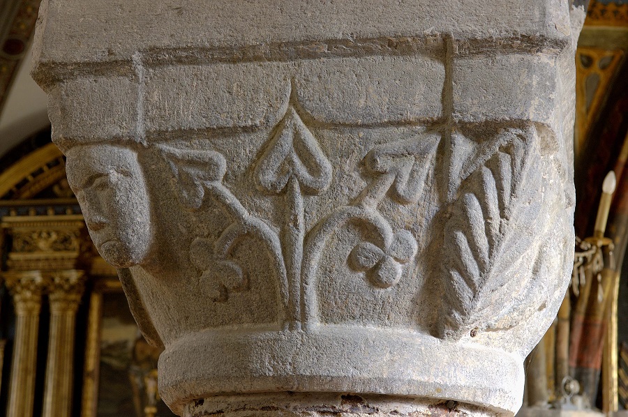 The side naves are separated from the central one by simple and multiple columns and complex Gothic piers on which rest the stylistically and iconographically diversified capitals.