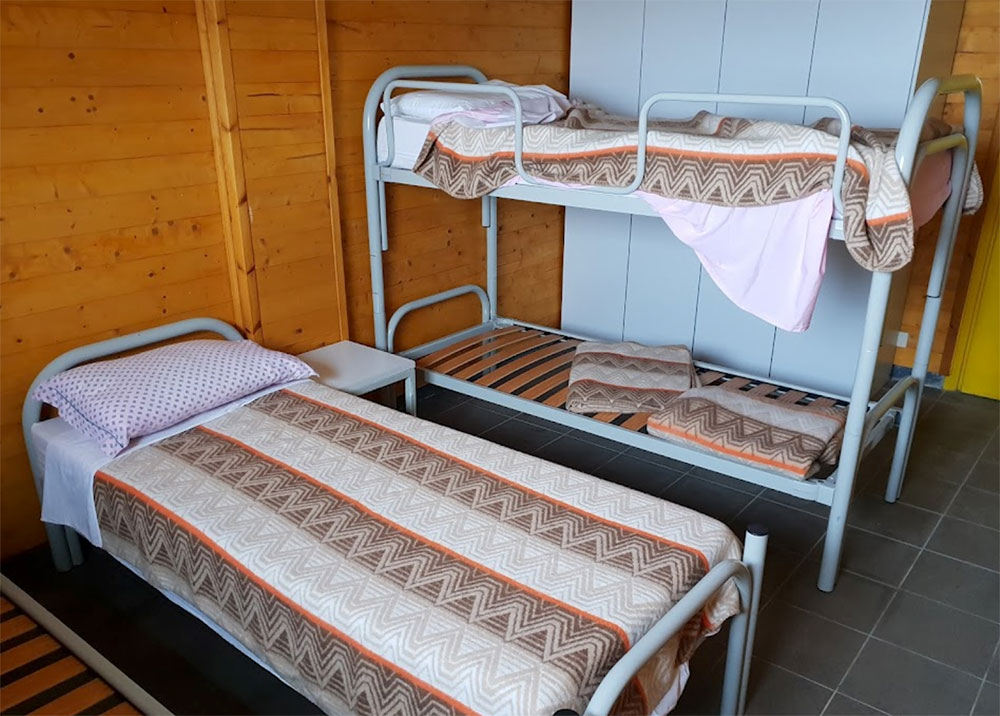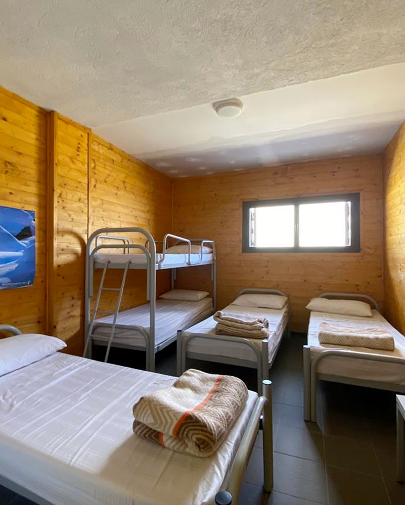 It has rooms with reserved bathrooms for 18 people and two dormitories with 56 bunk beds.