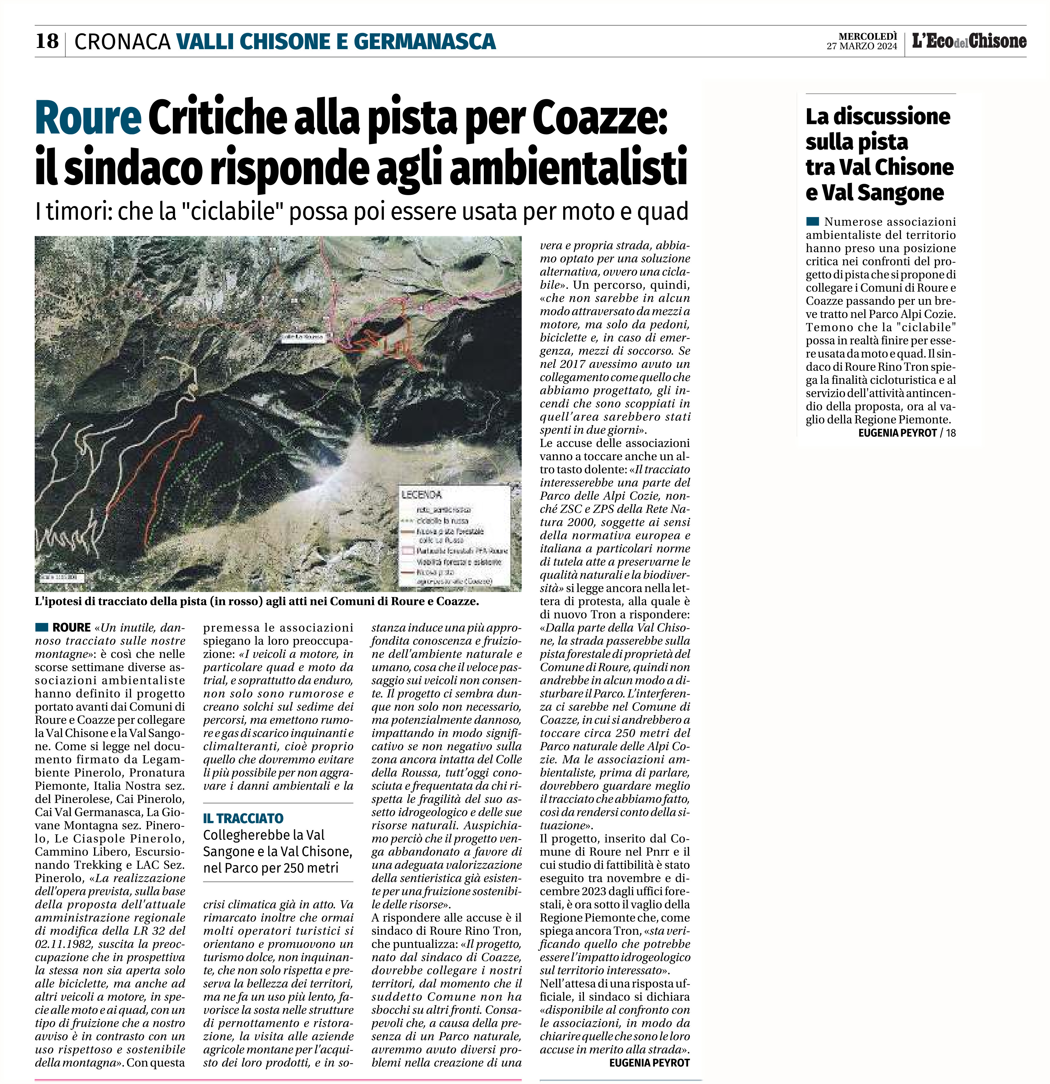 Critiche alla pista per Coazze: il sindaco risponde agli ambientalisti