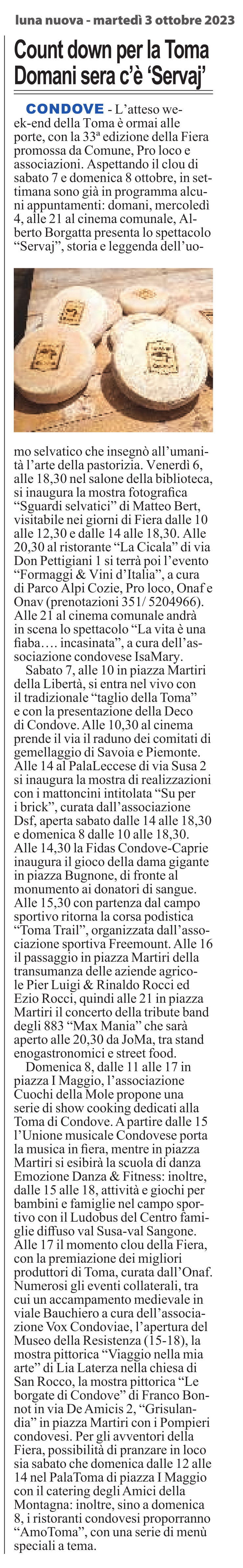 Count down per la Toma: Domani sera c’è ‘Servaj’