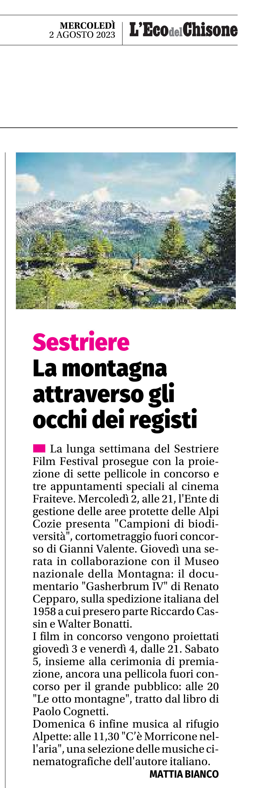 Sestriere Film Festival: mercoledì sera "Campioni di biodiversità"