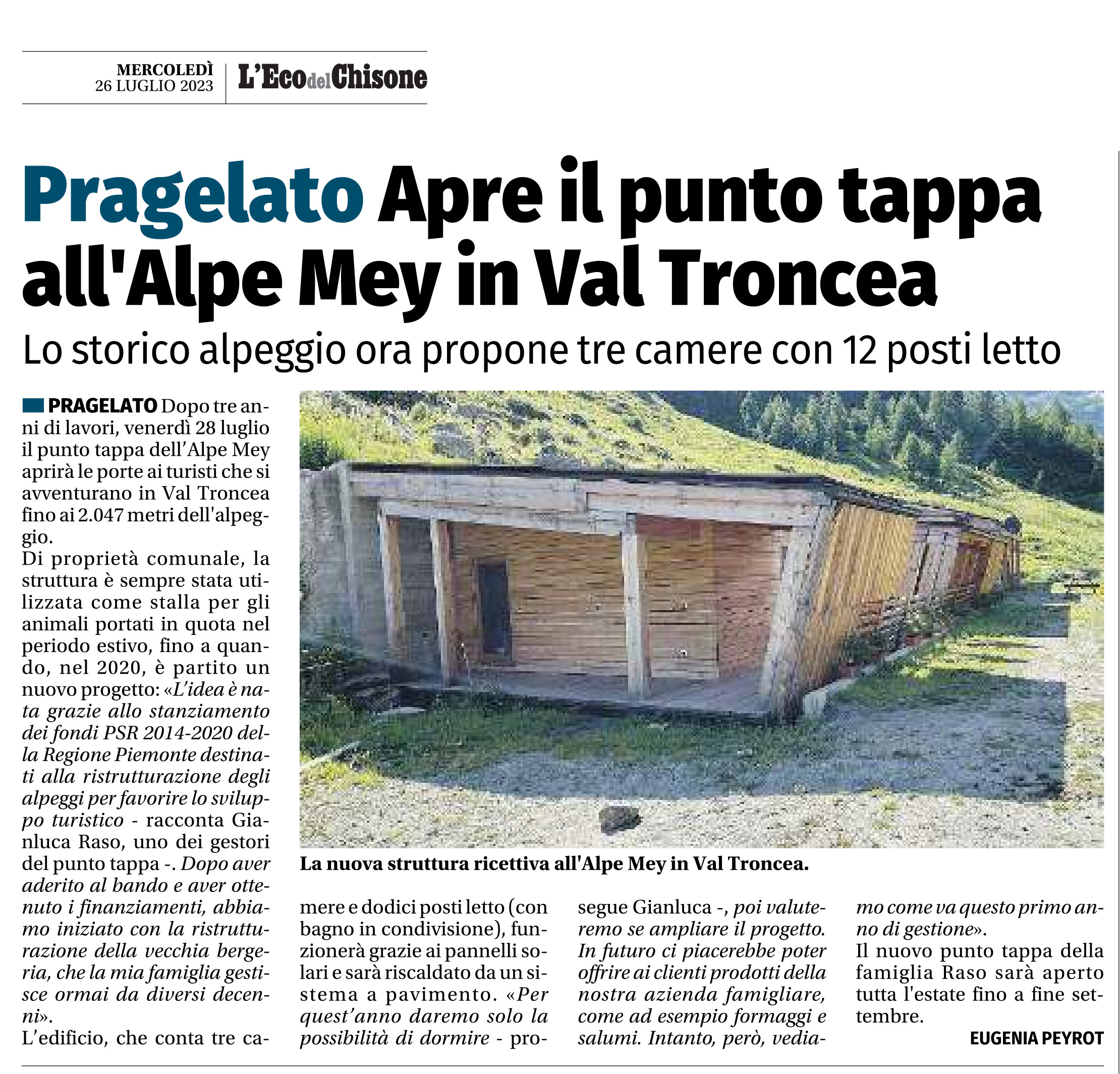 Pragelato Apre il punto tappa all'Alpe Mey in Val Troncea