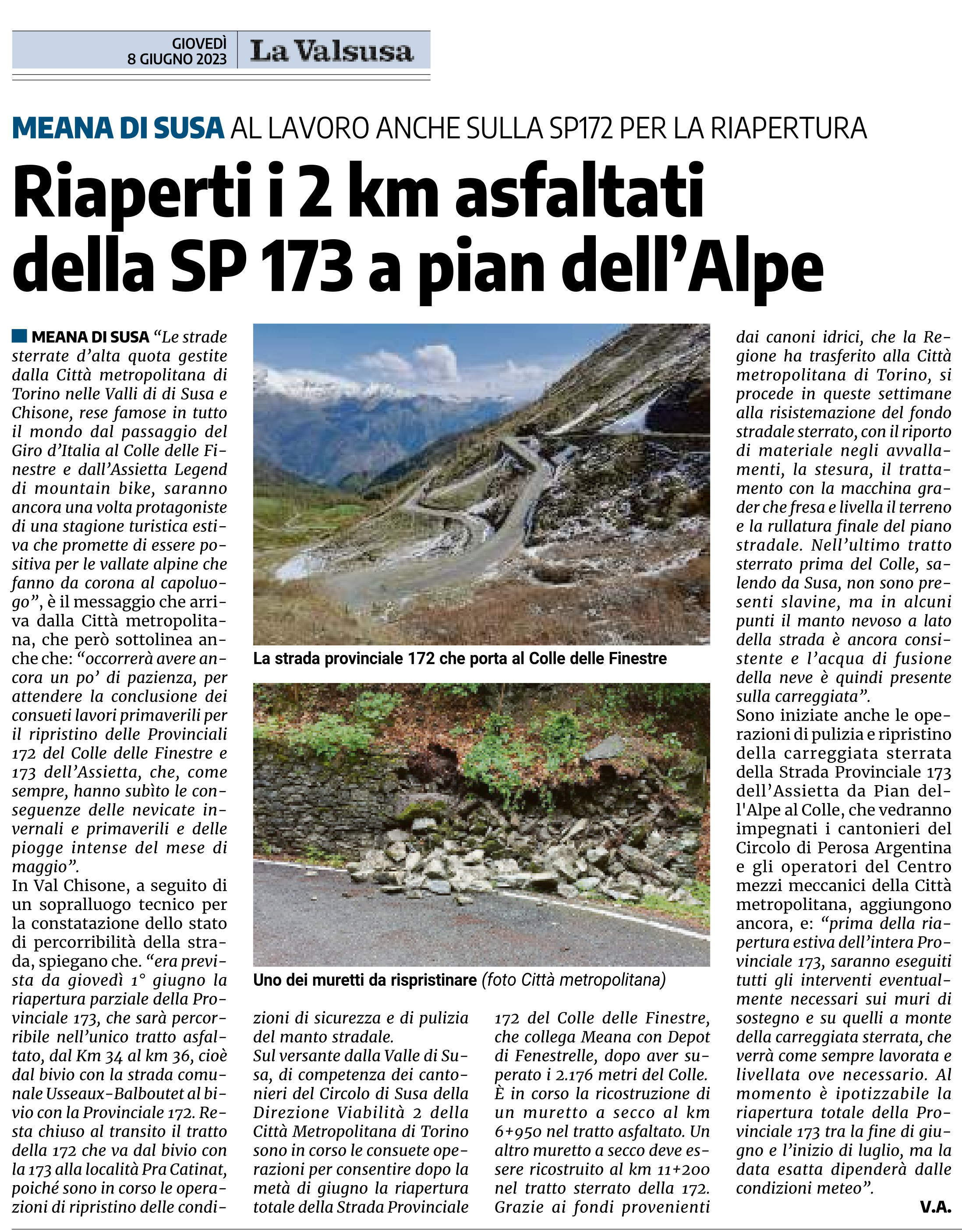 Riaperti i 2 km asfaltati della SP 173 a pian dell’Alpe