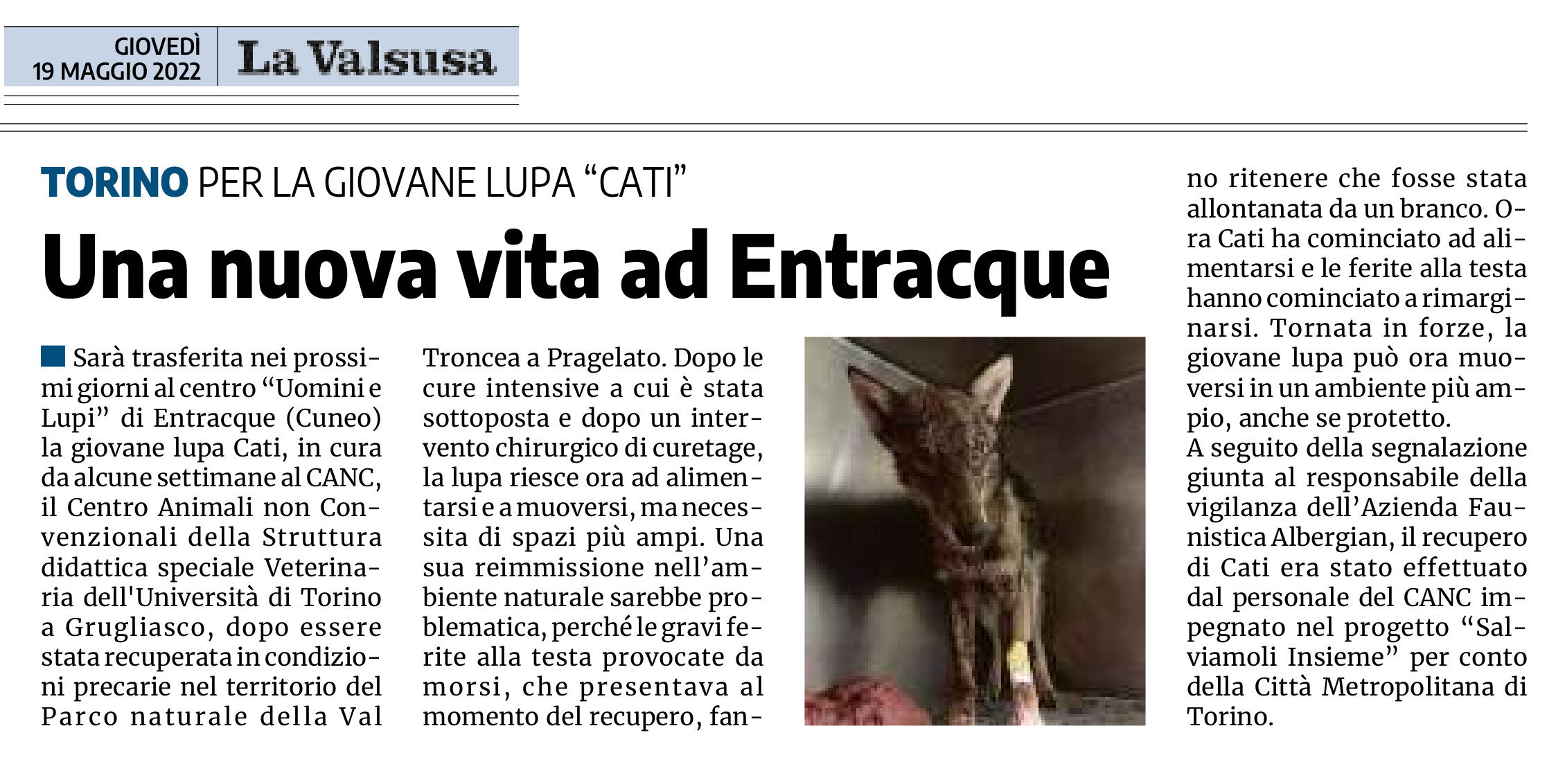 Una nuova vita per la lupa Cati, recuperata a Pragelato, al centro “Uomini e lupi”