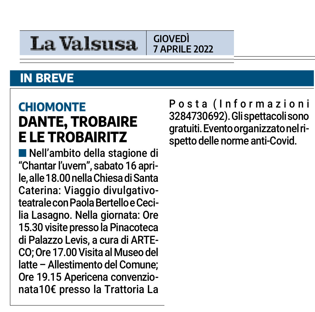 “Chantar l’uvern” volge al termine: ultimi spettacoli e visite in programma