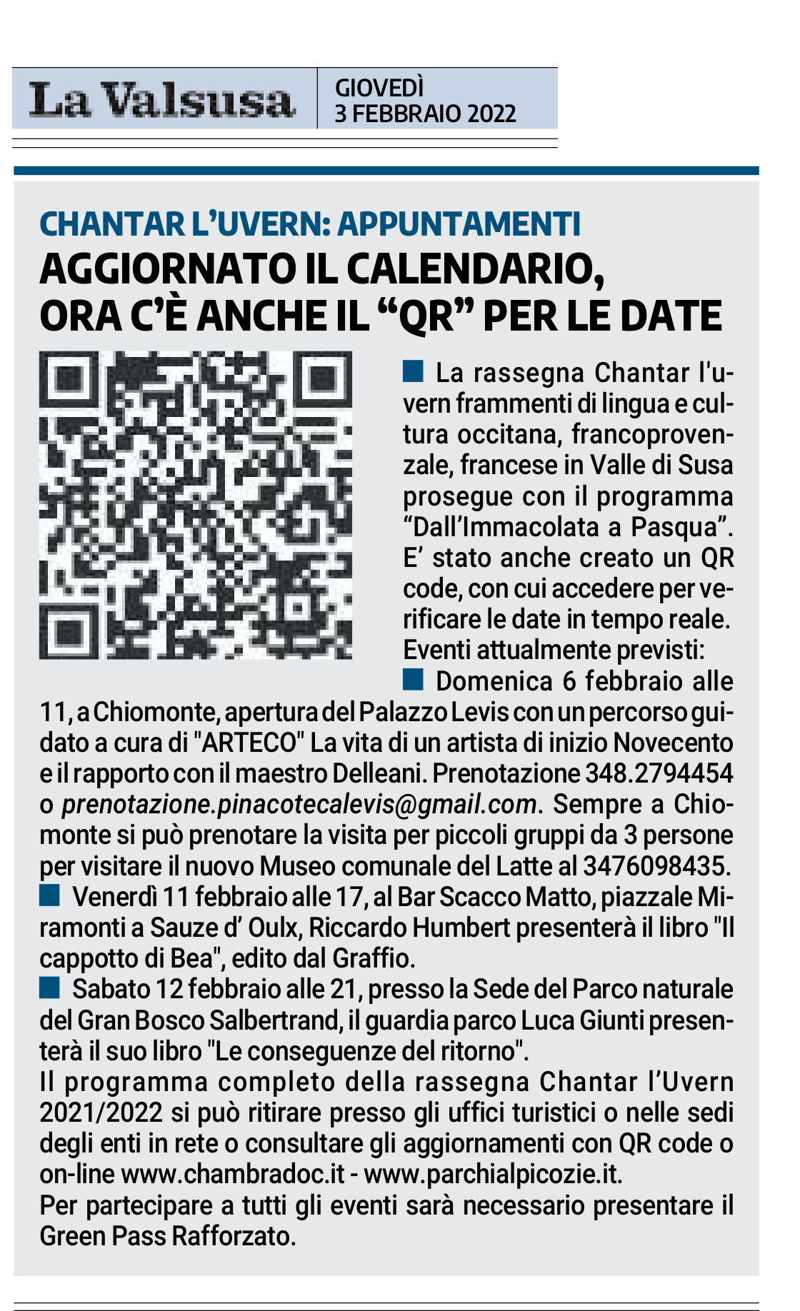 Dal Cappotto di Bea agli incontri con il lupo per Chantar l’Uvern