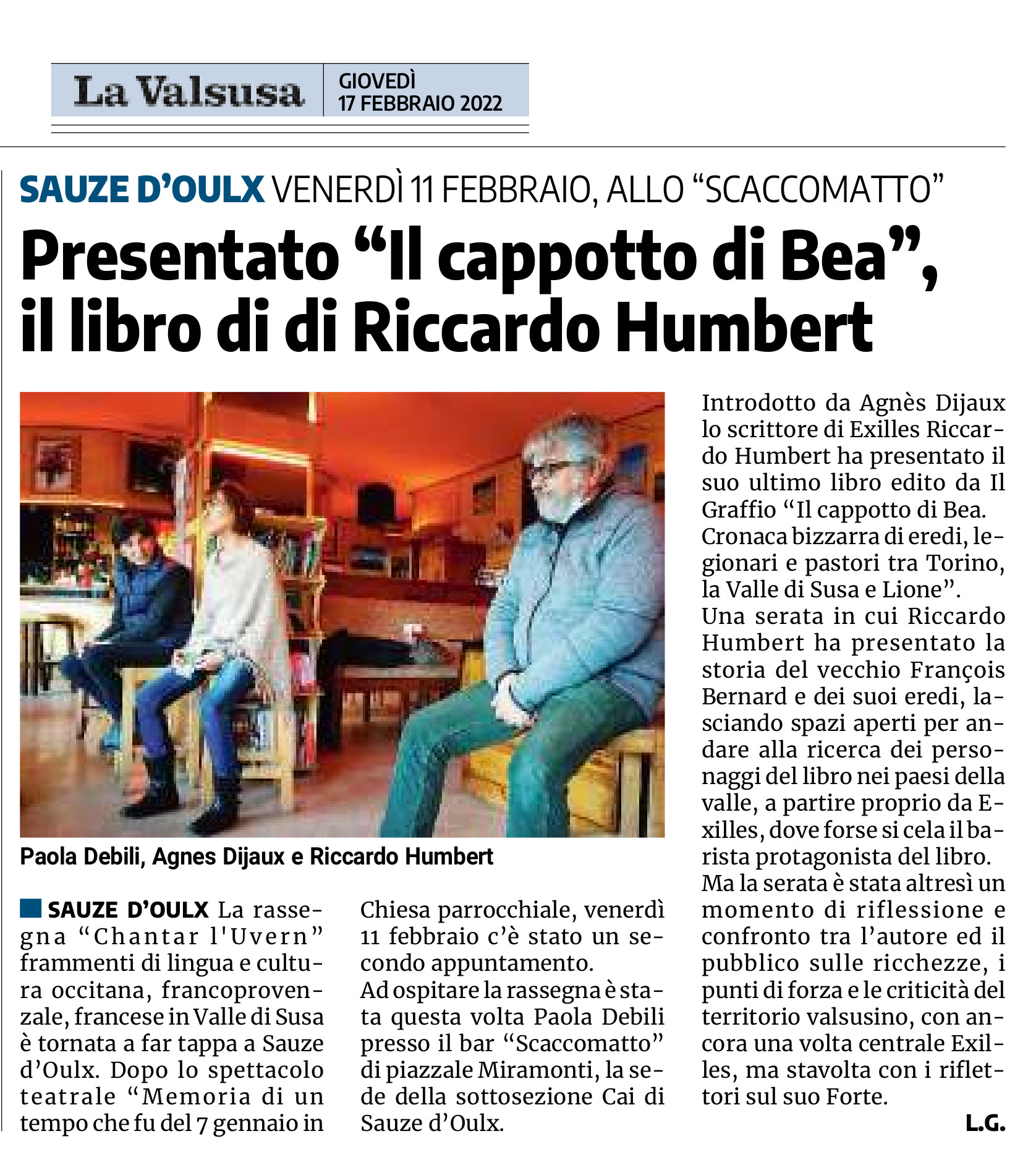 Presentato “Il cappotto di Bea”, il libro di di Riccardo Humbert