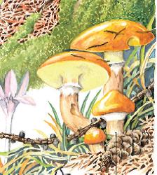 Le calendrier nous présente différentes espèces de champignons dans leur habitat naturel.