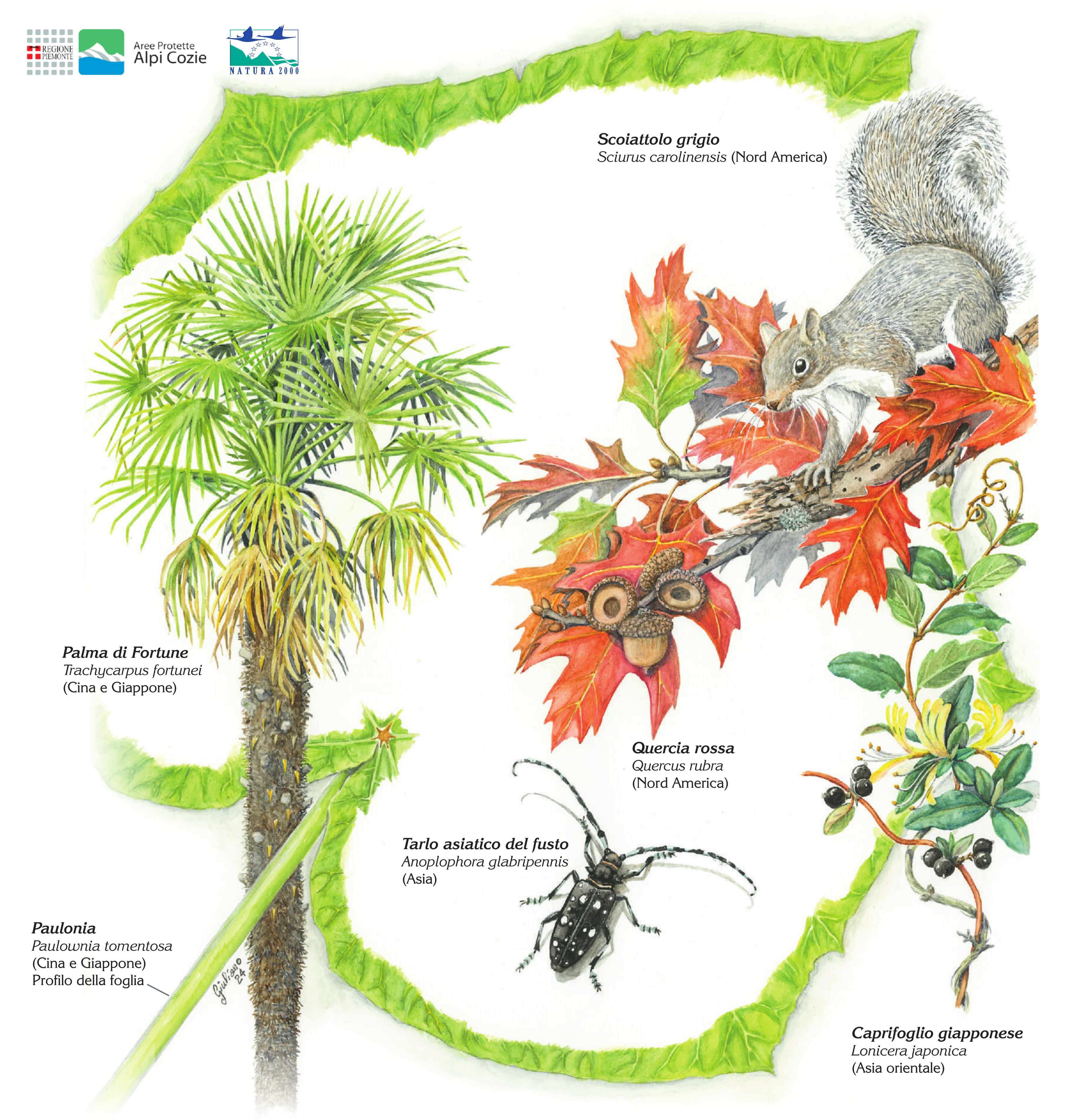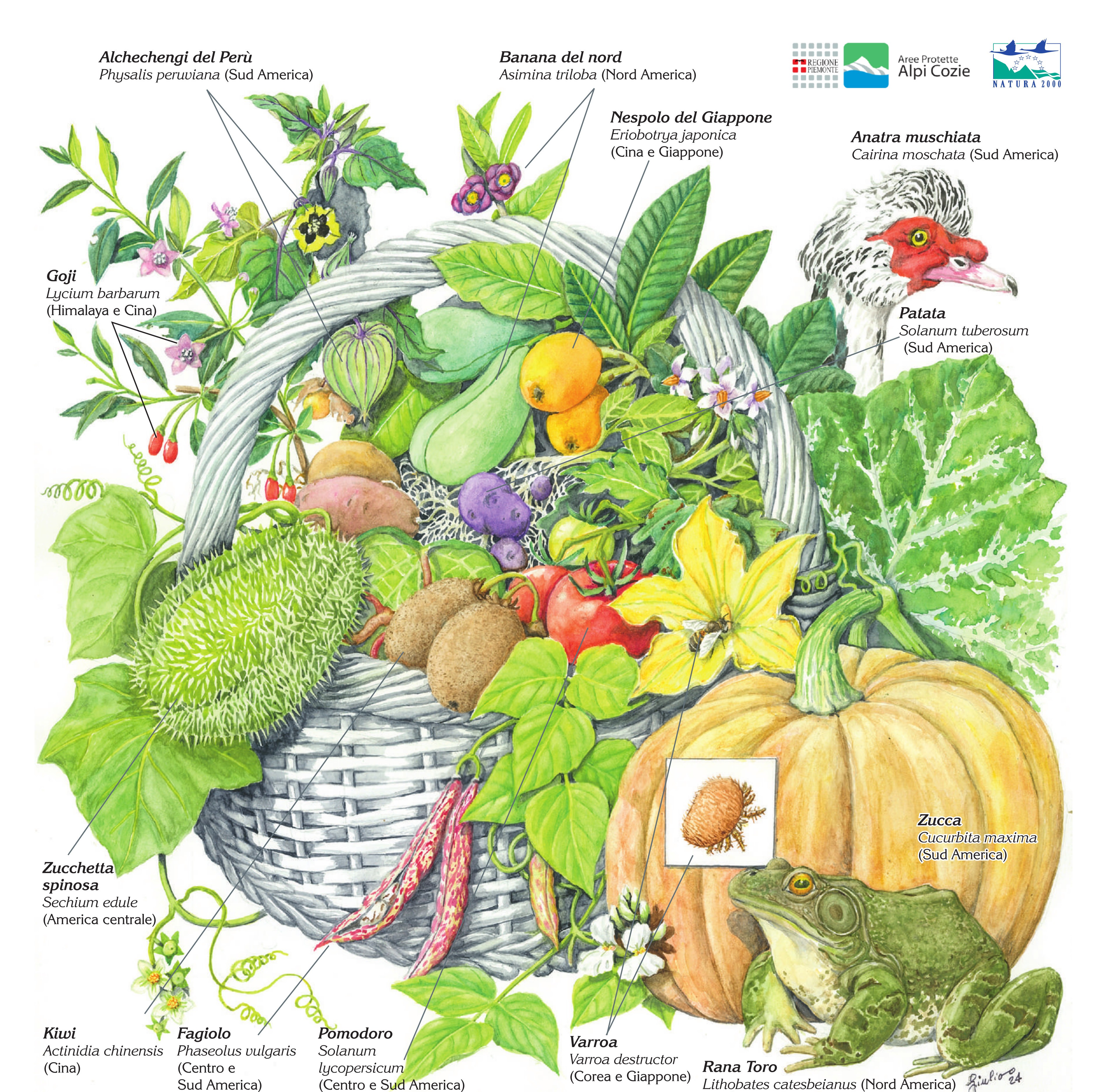 Il calendario 2025 dei Parchi delle Alpi Cozie è dedicato alla silenziosa invasione di piante e animali provenienti da Paesi lontani.