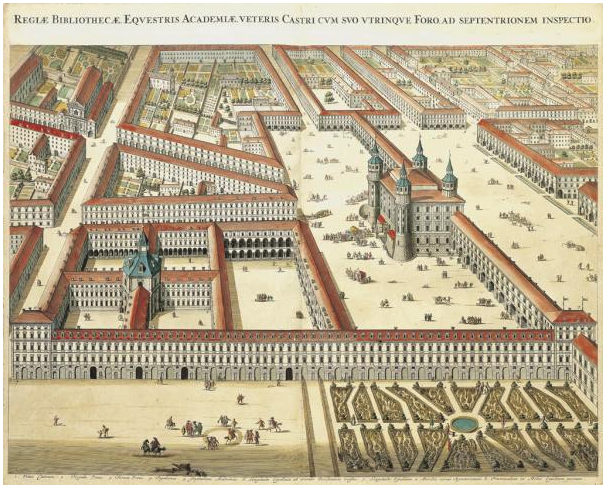 Veduta a volo d’uccello di piazza Castello a Torino, dal Theatrum statuum regiae celsitudinis Sabaudiae ducis, Pedemontii principis, Cypri regis. [...], 1682, vol. I, scheda I.7. ASCT.