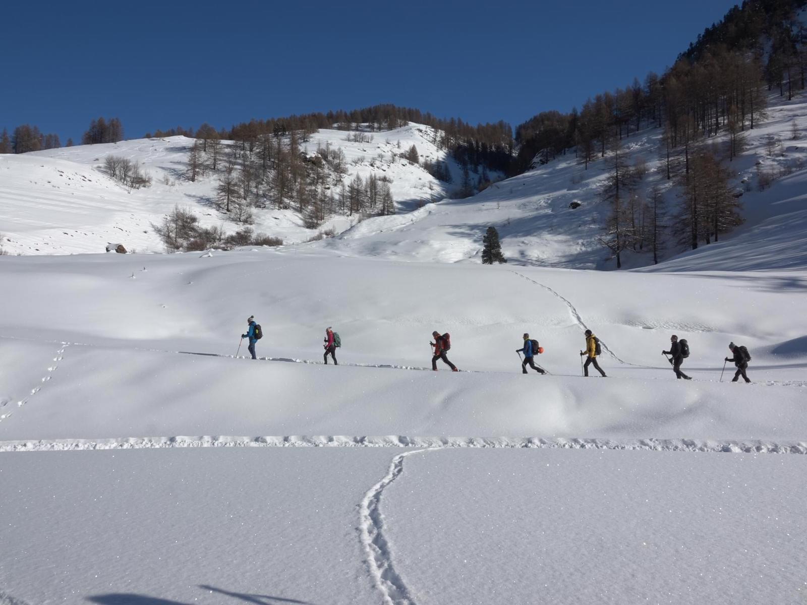Attrezzatura: kit Pala-Artva-Sonda per chi lo possiede; ramponcini/ciaspole in base alle condizioni di innevamento, bastoncini