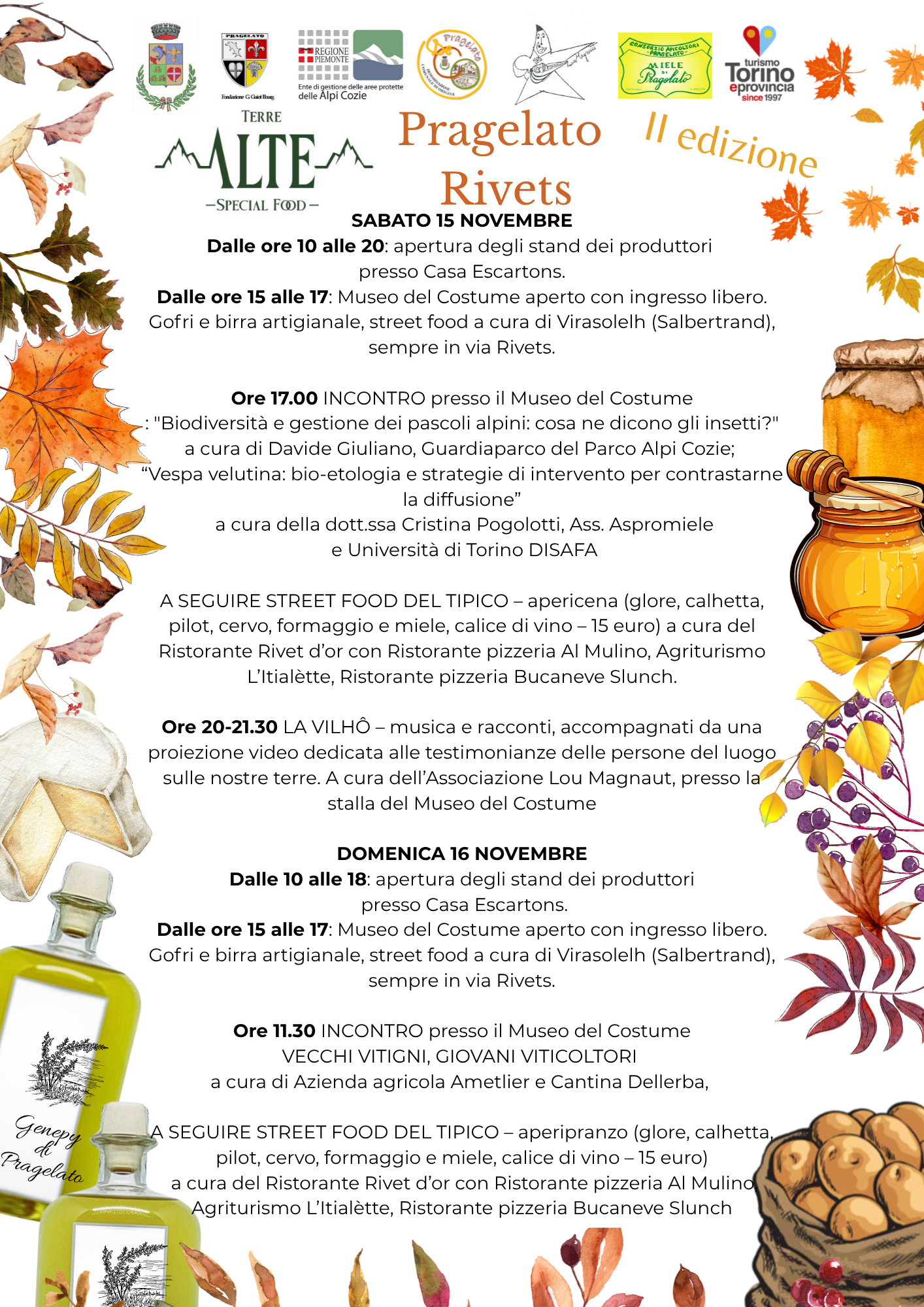 Sabato sera e domenica mattina, al termine delle conferenze e fino ad esaurimento scorte, Street Food tipico in frazione Rivet.