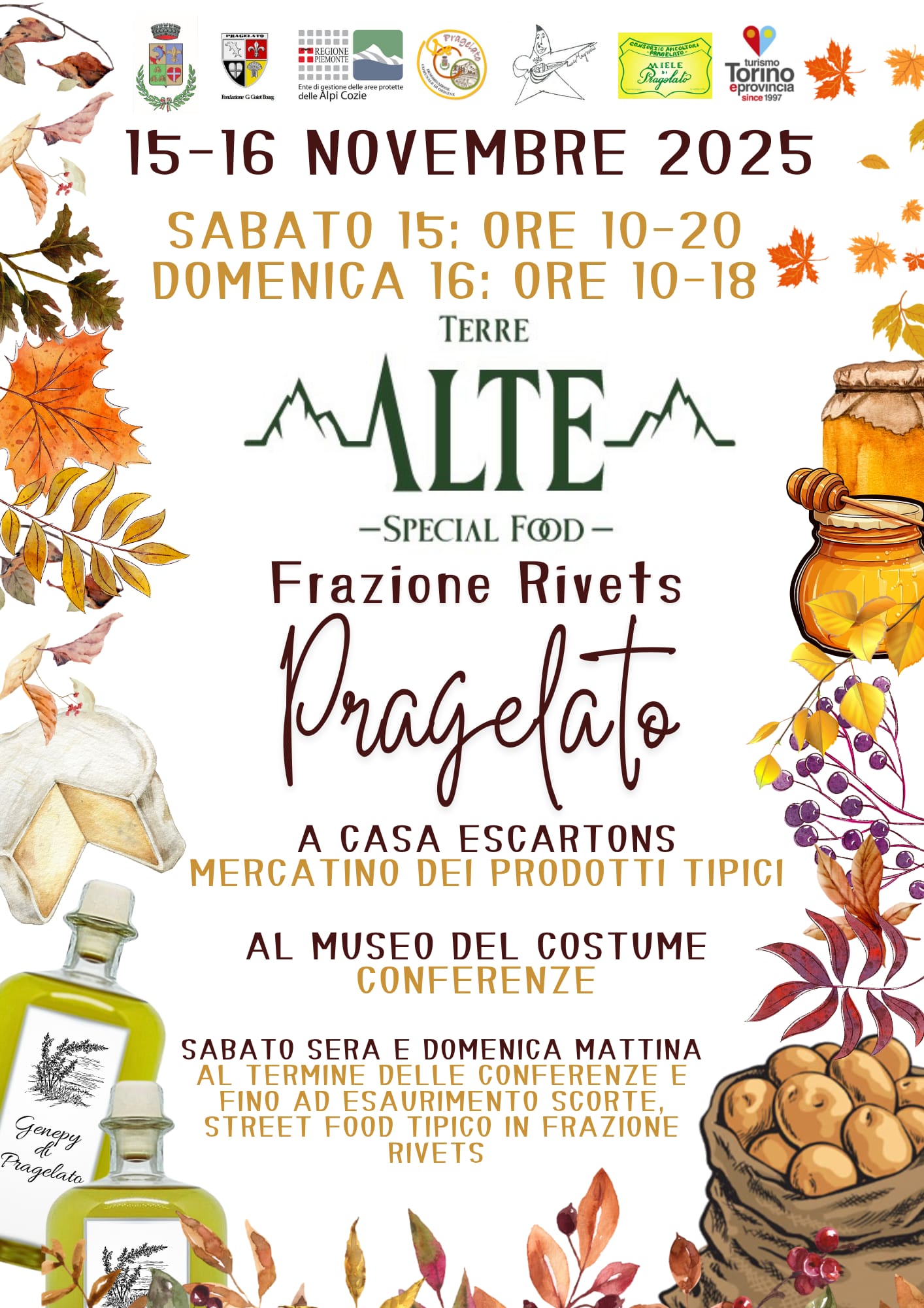 Sabato 15 novembre dalle 10 alle 20 e Domenica 16 novembre dalle 10 alle 18 a Pragelato in Frazione Rivet si svolgerà la manifestazione Terre Alte Special Food