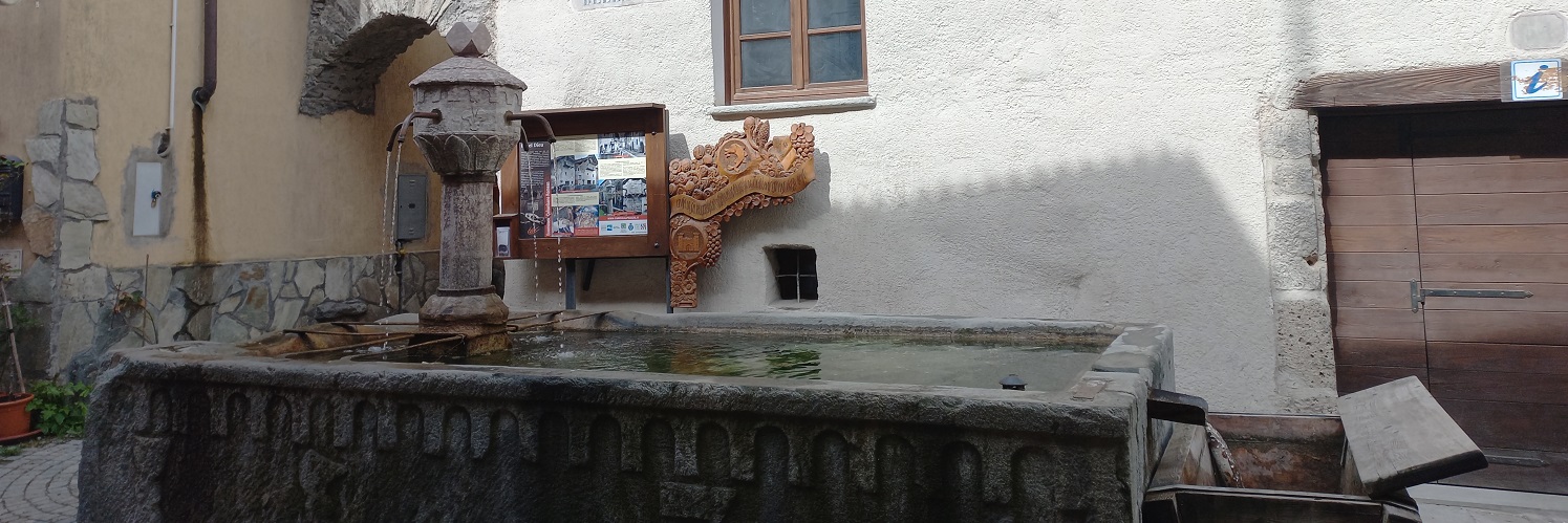 Derrière la fontaine se trouve l'Hôtel Dieu, un bâtiment historique, aujourd'hui propriété de l'Organisme de Gestion des Aires protégées des Alpes Cozie et intégré dans le parcours écomuséal, refuge pour les pèlerins au Moyen Âge, transformé en hôpital à l'époque de la grande peste de 1629.