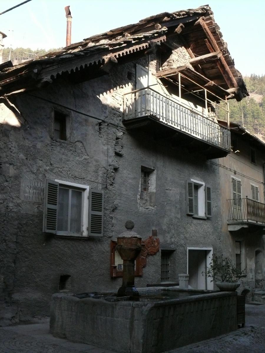 L'ancienne fontaine en pierre avec son bassin rectangulaire, Fontaine du Milieu, en occitan Bachà du medierä, sculptée parmi les décors du chapiteau sur la petite colonne d'où jaillissait l'eau, les symboles du pouvoir y sont représentés : un château crénelé, un lys, un dauphin. En raison de son imposante et de sa finesse, elle est l'une des plus belles de la Haute Vallée à l'époque dauphinale et témoigne d'une prospérité économique inégalée. Elle a été reproduite et placée à l'entrée du Bourg Médiéval du Valentino, à Turin, à l'occasion de l'Exposition générale italienne de 1884, selon le projet d'Alfredo d'Andrade.