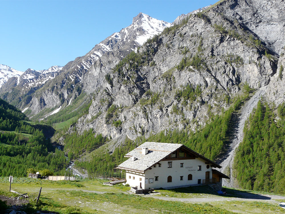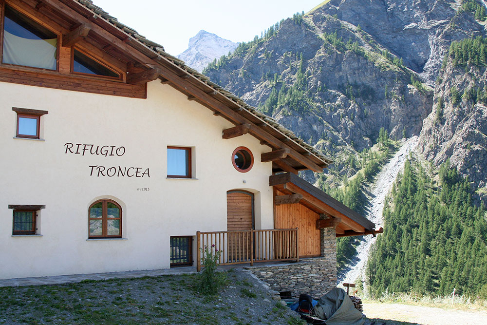 En été, vous montez au refuge par un chemin de terre confortable à l'intérieur du parc et non accessible aux véhicules motorisés. Nous partons du hameau Pattemouche de Pragelato et remontons la vallée de Troncea. Vous passez sous le village de Laval et entrez dans le parc. Plus loin, nous quittons le chemin de terre qui continue la vallée et faisons un détour à gauche qui mène à une colline où se trouvent le hameau de Troncea et le refuge. à environ une heure et demie de Pattemouche, avec un dénivelé de 300 m. Après le hameau de Laval vous pouvez tourner à gauche pour emprunter un itinéraire alternatif en passant par le hameau abandonné de Seytes. Cette variante s'avère plus exigeante que le parcours en fond de vallée.