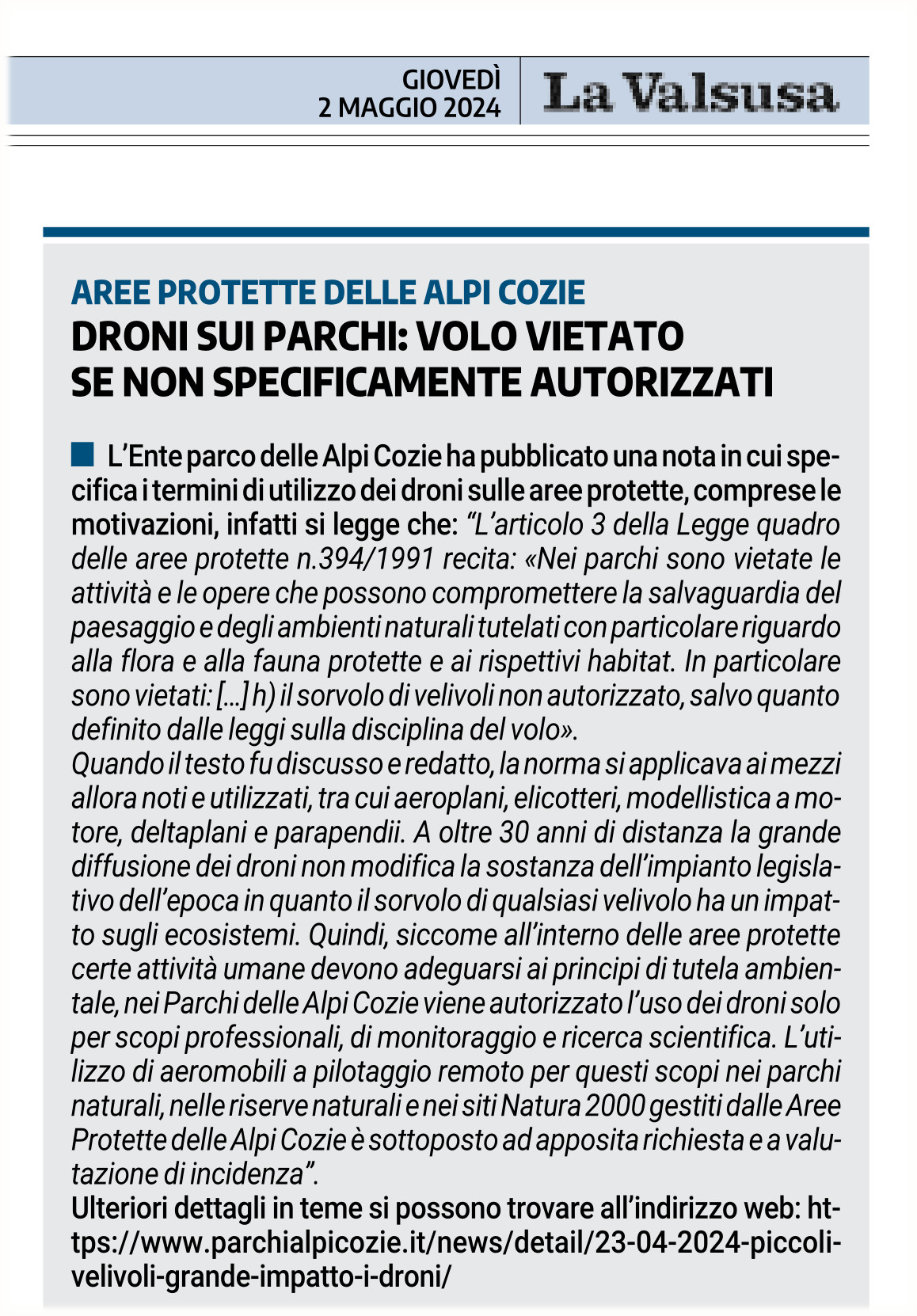 Droni sui parchi: volo vietato se non specificatamente autorizzati