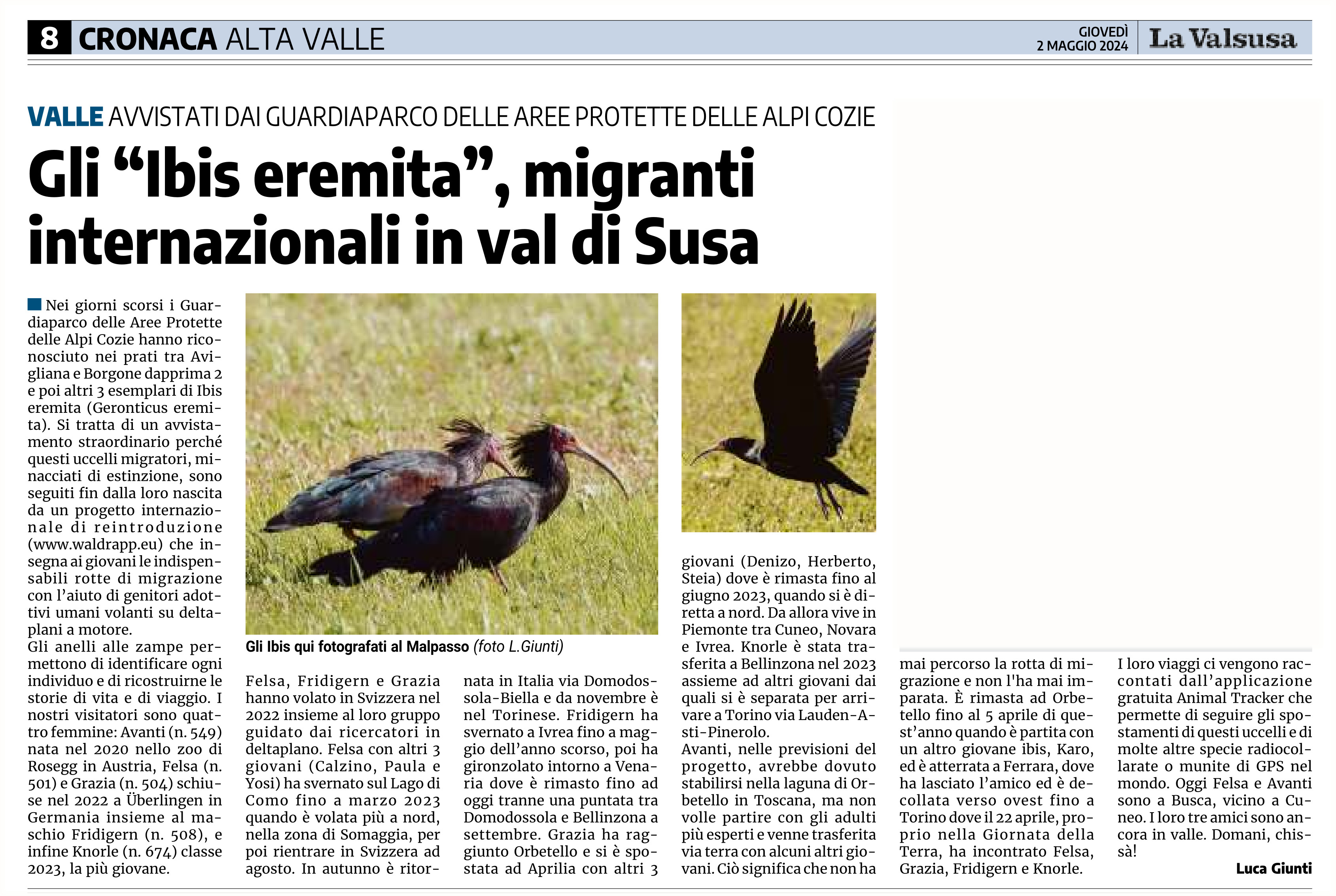 Gli “Ibis eremita”, migranti internazionali in val di Susa