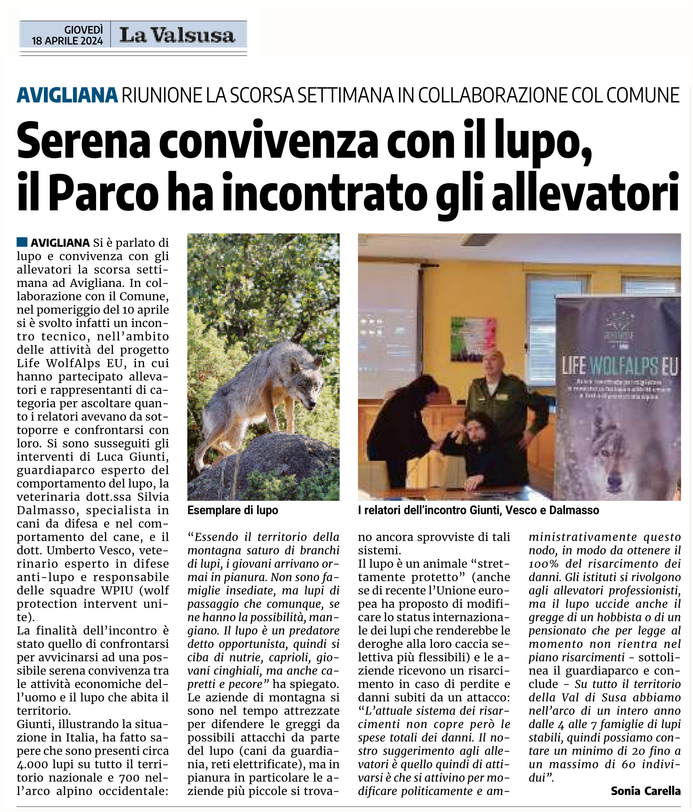 Serena convivenza con il lupo, il Parco ha incontrato gli allevatori