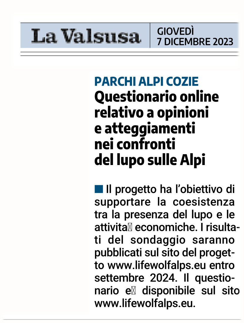 Questionario online relativo a opinioni e atteggiamenti nei confronti del lupo sulle Alpi