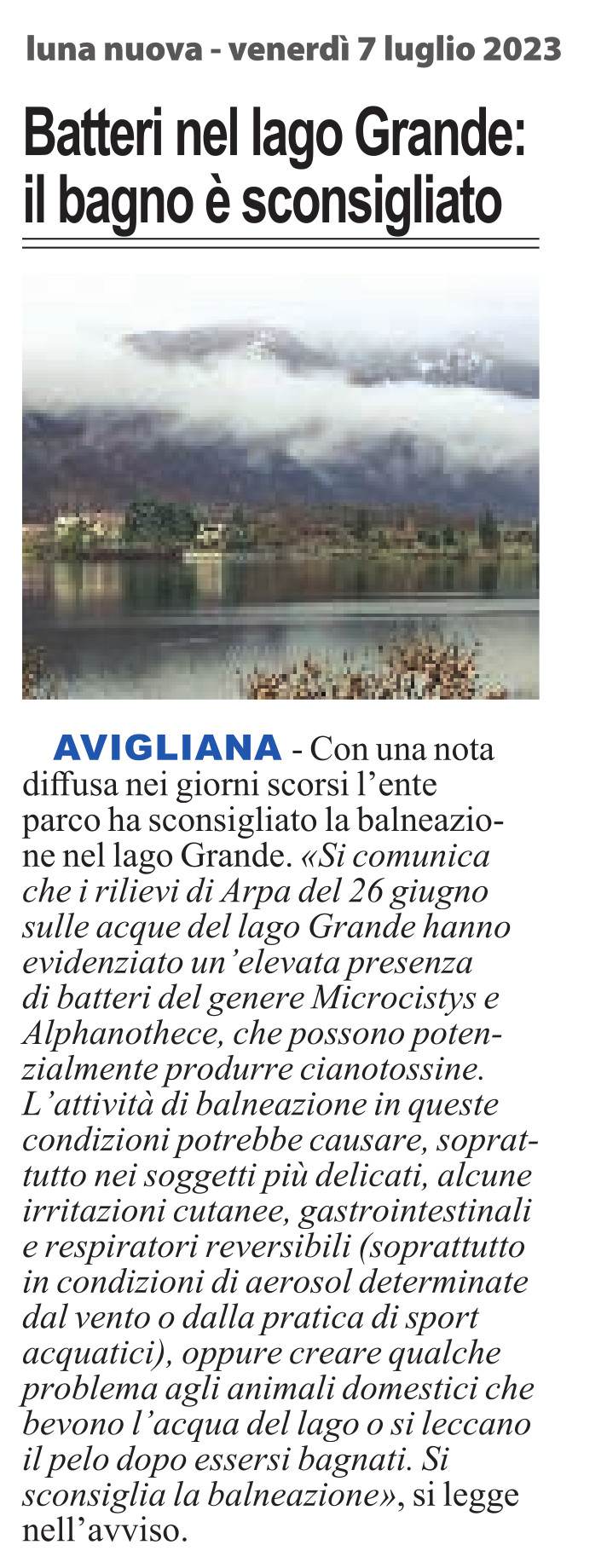Lago ok ma balneazione sconsigliata Il problema è l’alga che irrita la pelle