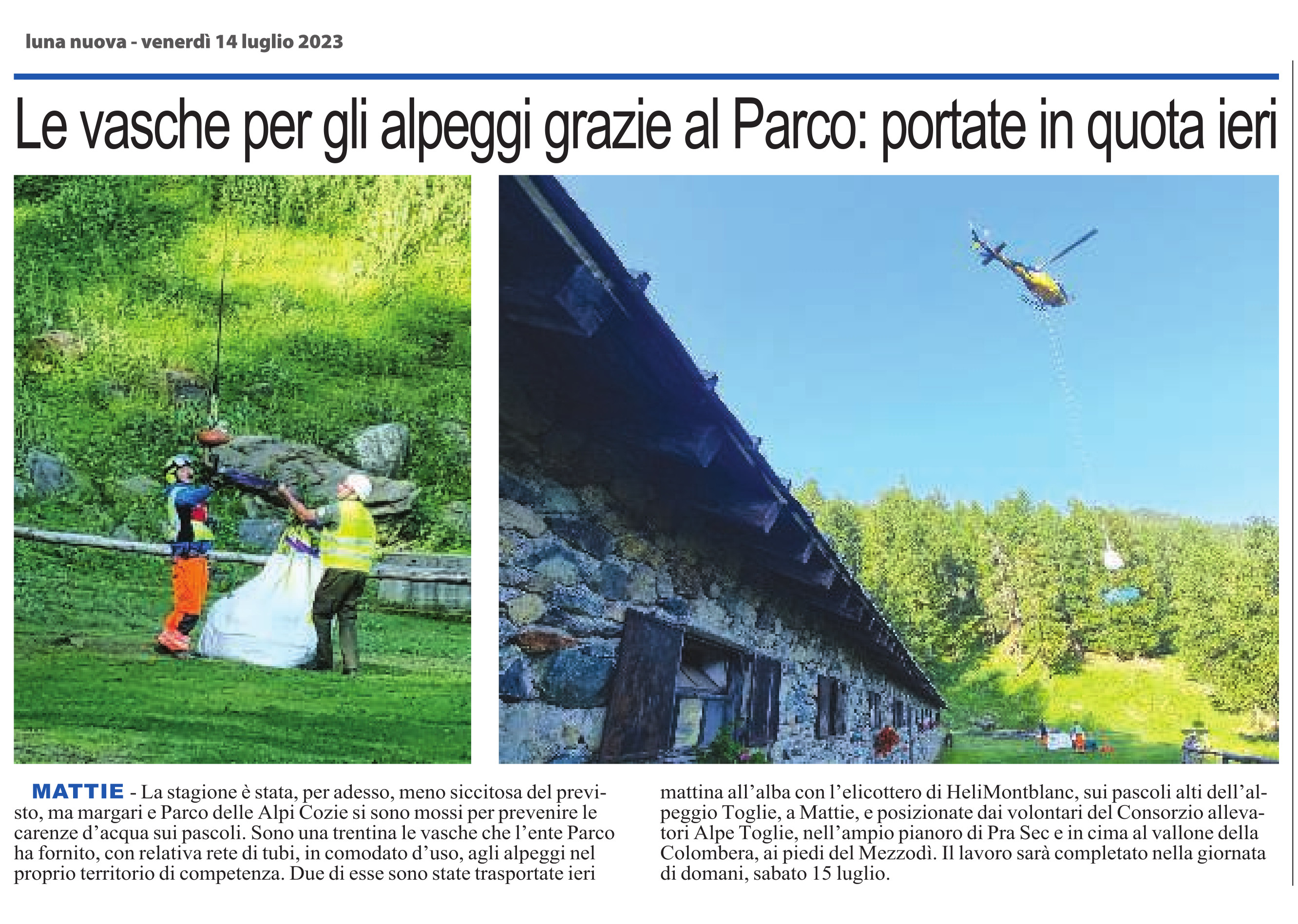 Le vasche per gli alpeggi grazie al Parco: portate in quota ieri