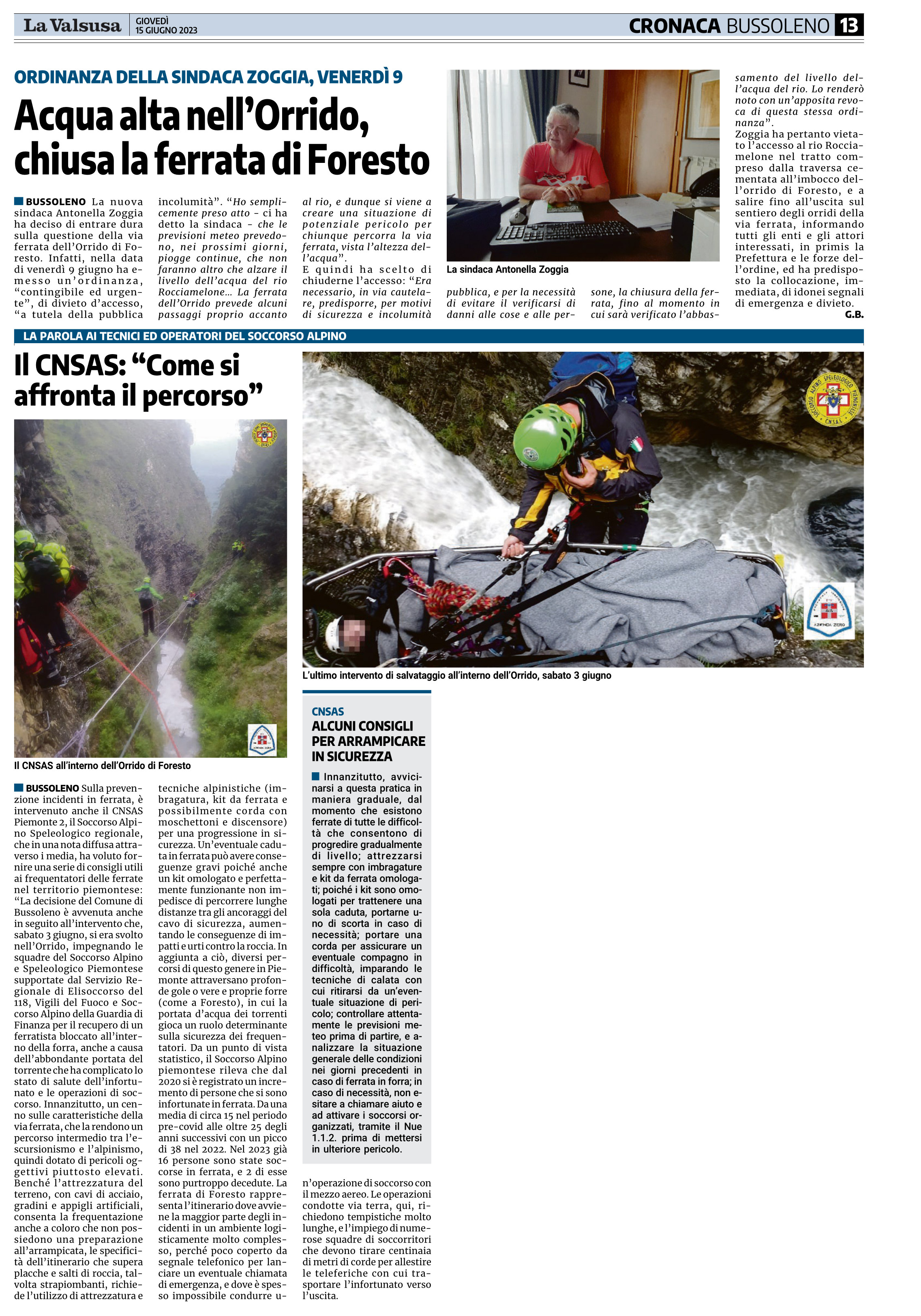 Acqua alta nell’Orrido, chiusa la ferrata di Foresto