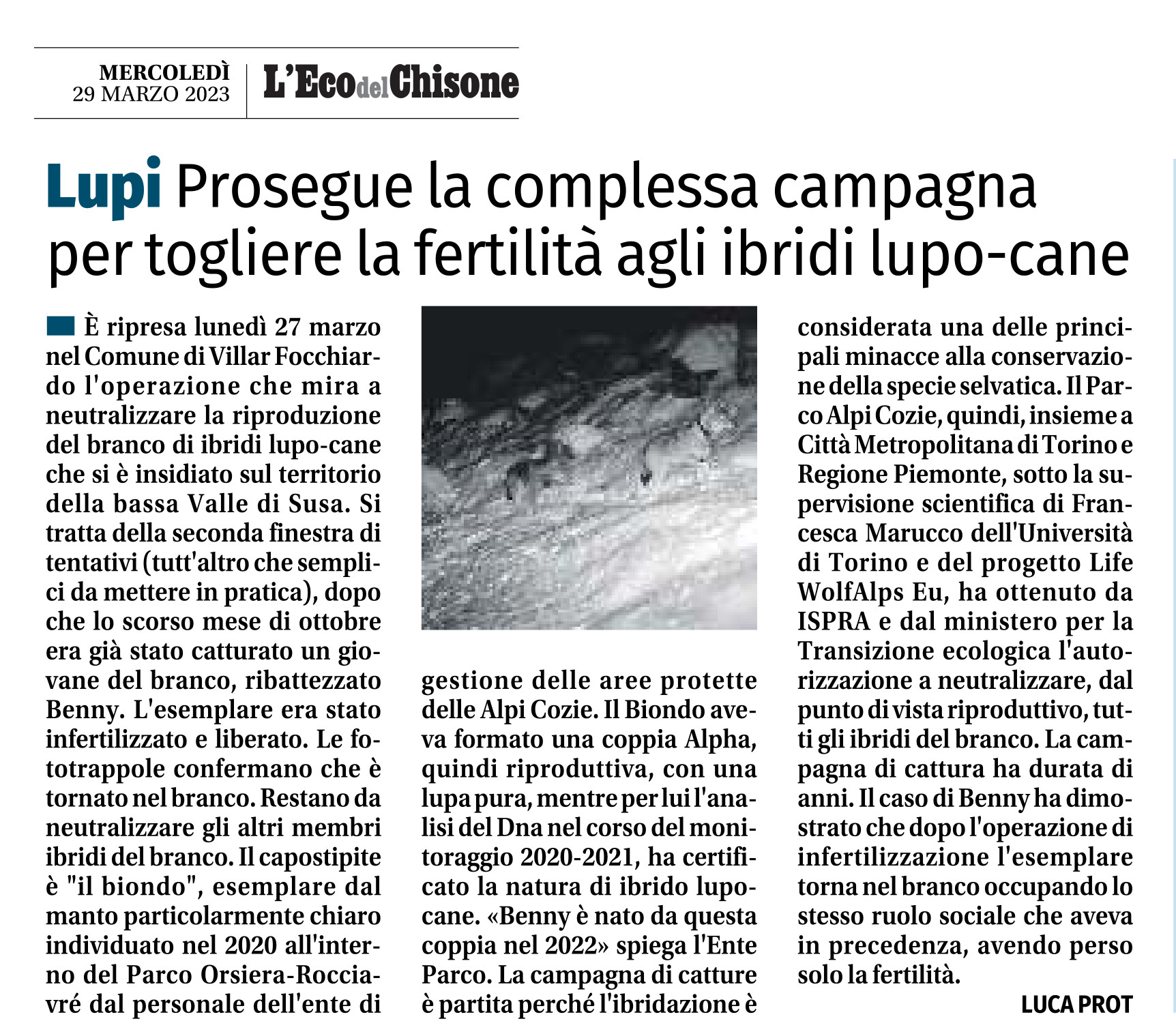 Parchi Alpi Cozie. Seconda sessione di catture ibridi lupo-cane in Val Susa