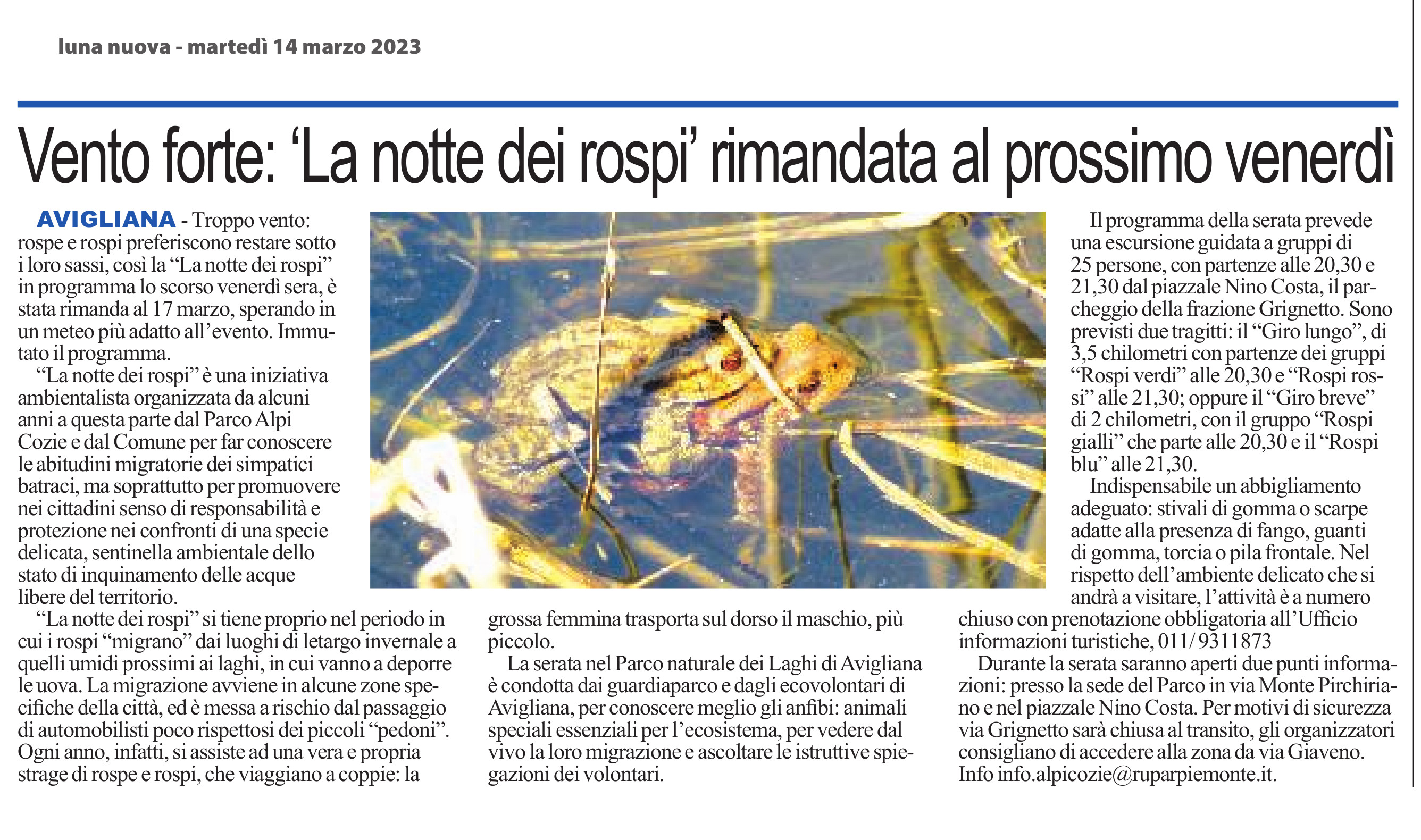 Vento forte: ‘La notte dei rospi’ rimandata al prossimo venerdì