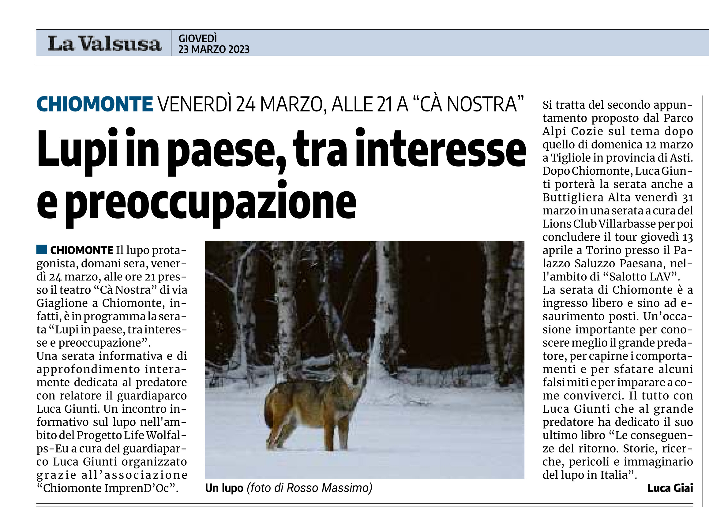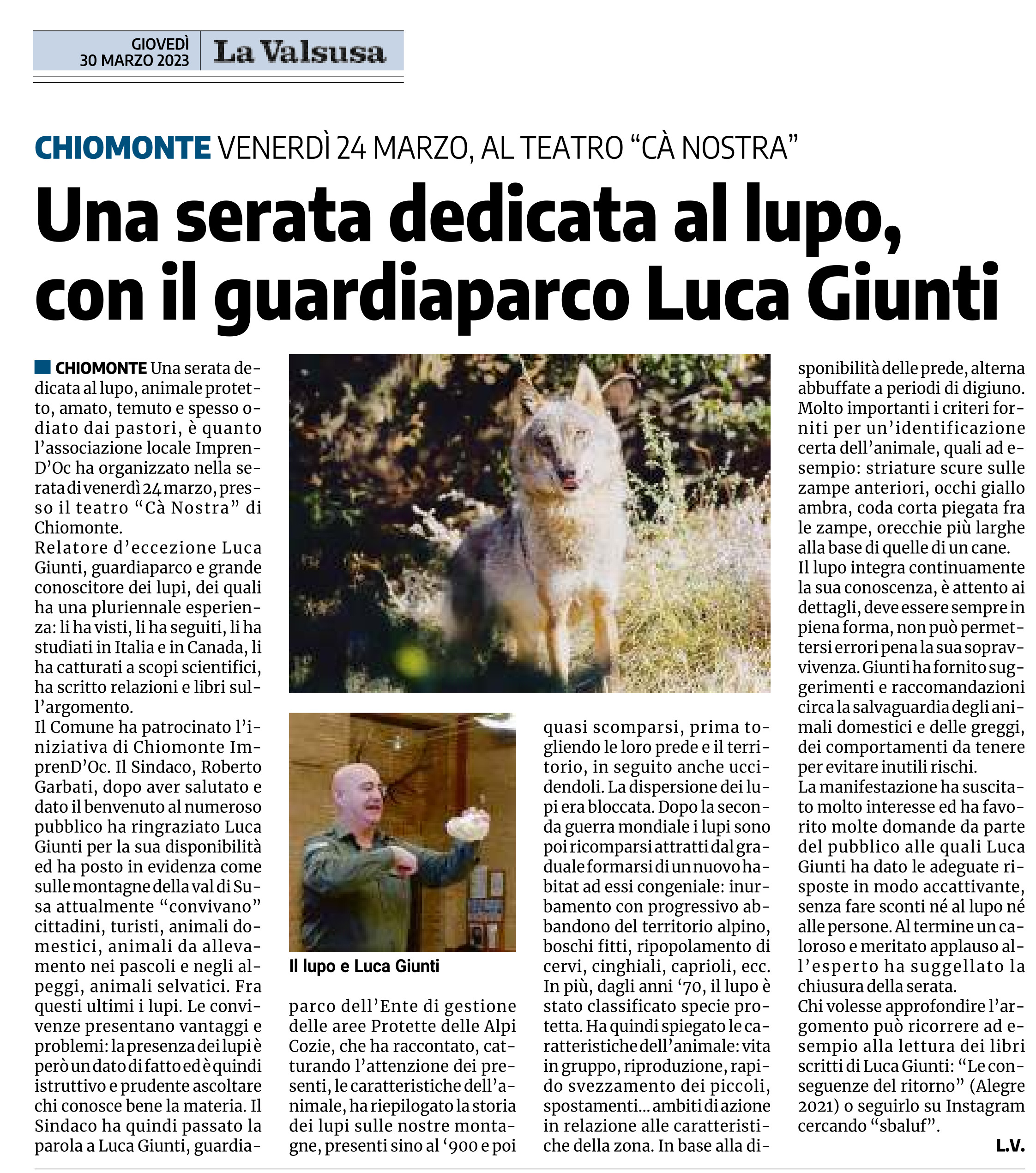Una serata dedicata al lupo, con il guardiaparco Luca Giunti