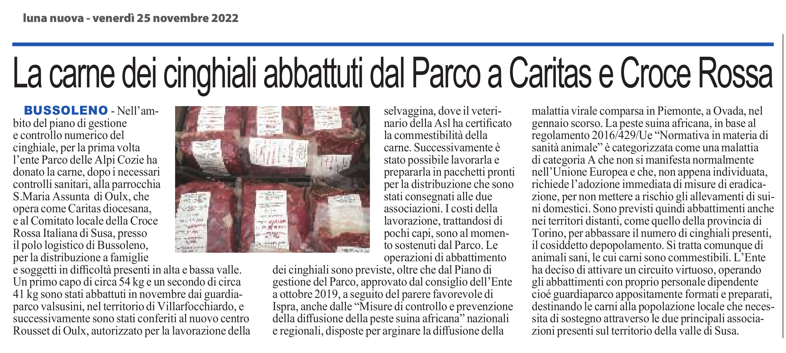 Parchi Alpi Cozie. I cinghiali abbattuti alle famiglie bisognose