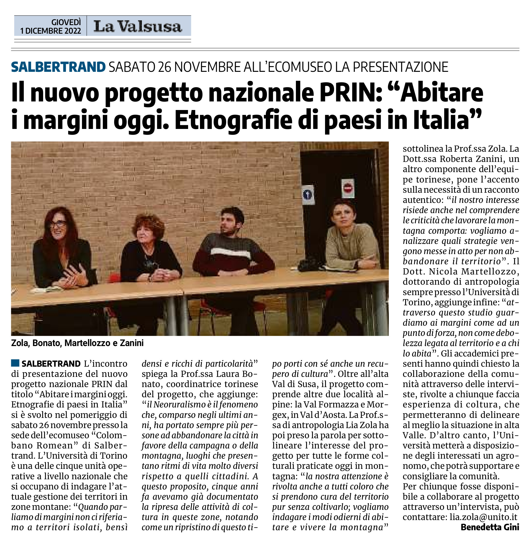 Il nuovo progetto nazionale PRIN: “Abitare i margini oggi. Etnografie di paesi in Italia”