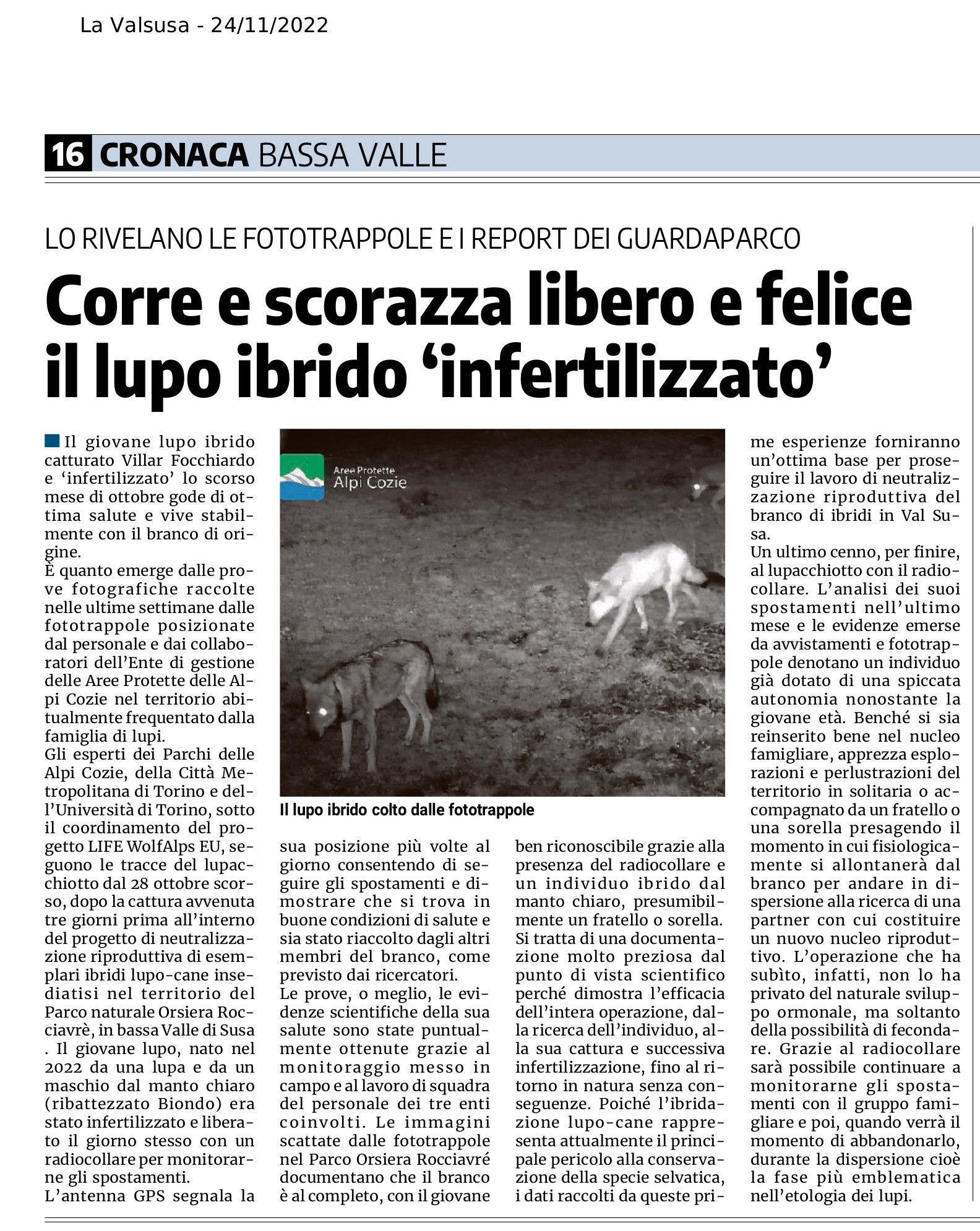 Lotta all’ibridazione lupo-cane: dalle Alpi Cozie la storia di un ibrido sterilizzato riaccolto dal branco