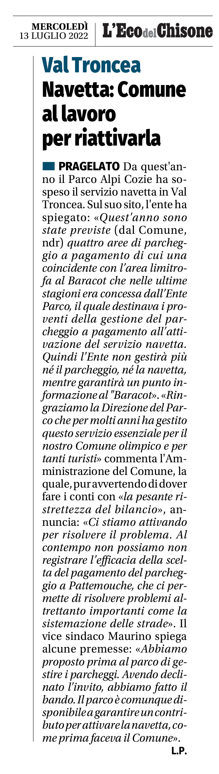 Val Troncea Navetta: Comune al lavoro per riattivarla