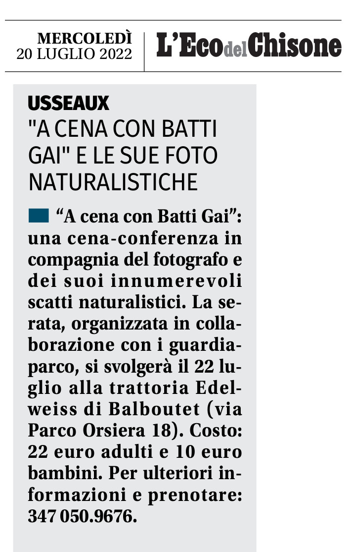 "A cena con Batti Gai" e le sue foto naturalistiche