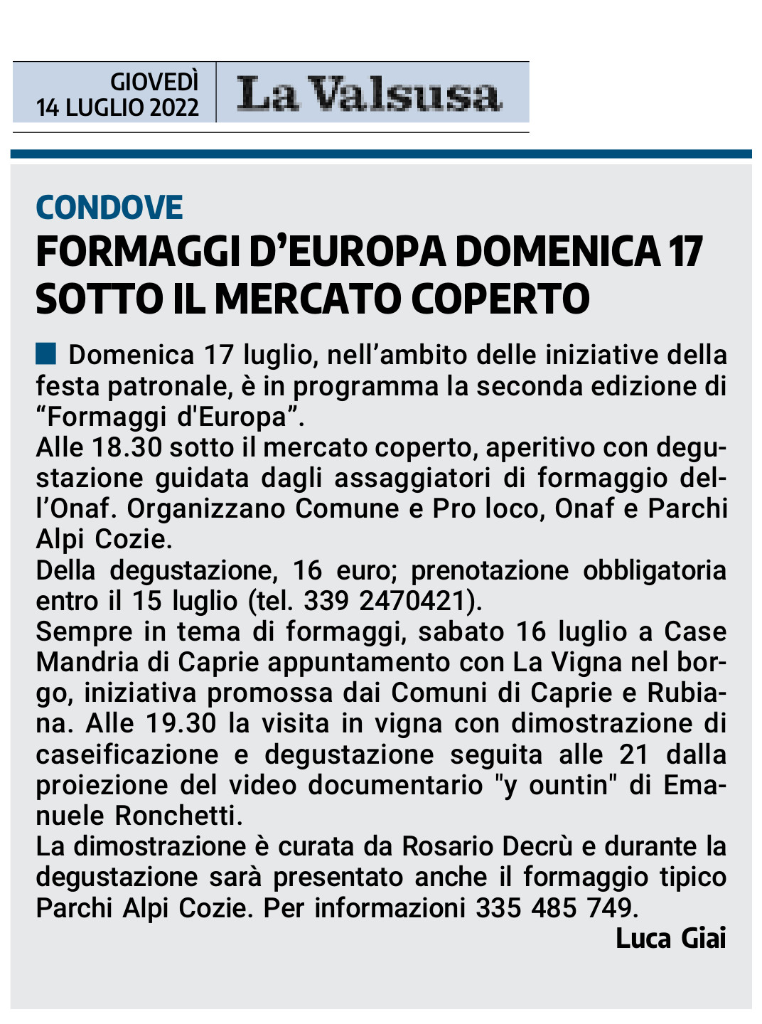 Formaggi d’Europa domenica 17 sotto il mercato coperto