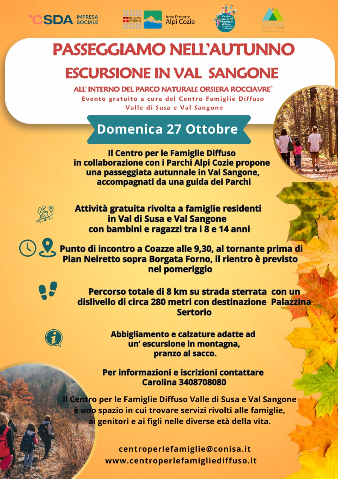 Domenica 27 ottobre il Centro Famiglie Diffuso Valle Susa e Val Sangone in collaborazione con i Parchi Alpi Cozie organizza un'escursione in Val Sangone nel Parco naturale Orsiera Rocciavrè con la guida Parchi Alpi Cozie Elena Bianco Chinto.
