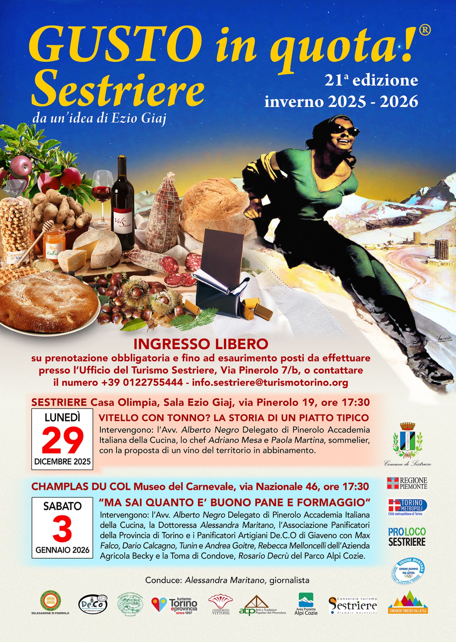 Sabato 3 gennaio a Champlas du Col (Sestriere) presso il Museo del Carnevale in via Nazionale 46 alle ore 17.30 appuntamento con Gusto in quota!