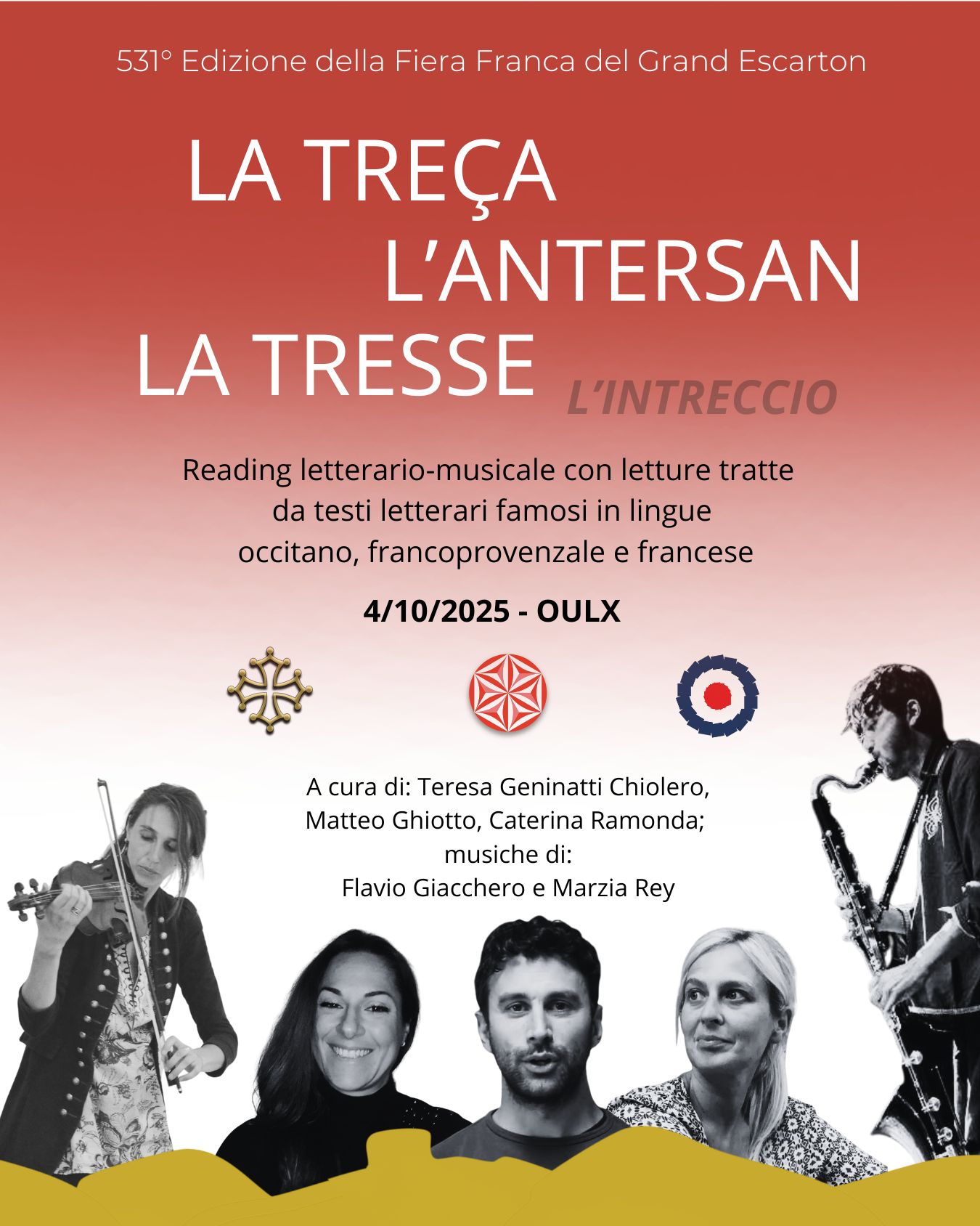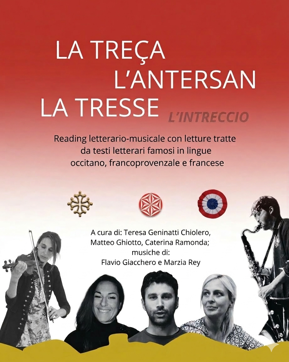 Venerdì 1 maggio ore 20.45 a Villar Focchiardo, Salone polivalente Via Cappella delle Vigne 3, La treça - la trenò - la tresse - l'intreccio Reading letterario-musicale
