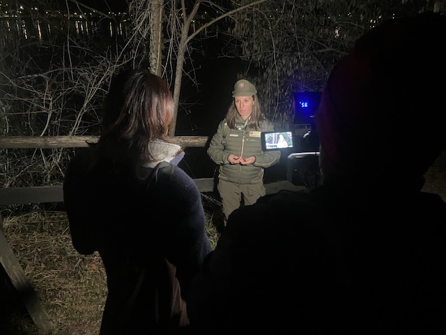 La campagna SOS Anfibi non consiste soltanto in azioni sul territorio e limitazioni, ma è soprattutto un’attività rivolta alla cittadinanza e a tutte le persone interessate a scoprire qualcosa in più sulla natura che li circonda e sull’importanza della conservazione. Sempre in collaborazione con il Comune di Avigliana, l’Ente Parco ha raddoppiato il tradizionale appuntamento della Notte dei Rospi organizzata nelle serate di venerdì 28 febbraio e venerdì 7 marzo quando il pubblico è stato introdotto alle meraviglie del Parco Naturale dei Laghi di Avigliana dai guardiaparco e dal personale tecnico che li hanno guidati lungo i percorsi che costeggiano la Palude dei Mareschi alla luce delle pile frontali per osservare rospi, rane dalmatine e anche specie alloctone invasive come il gambero rosso della Louisiana, la cozza zebrata e alcuni pesci catturati appositamente per essere mostrati ai partecipanti.