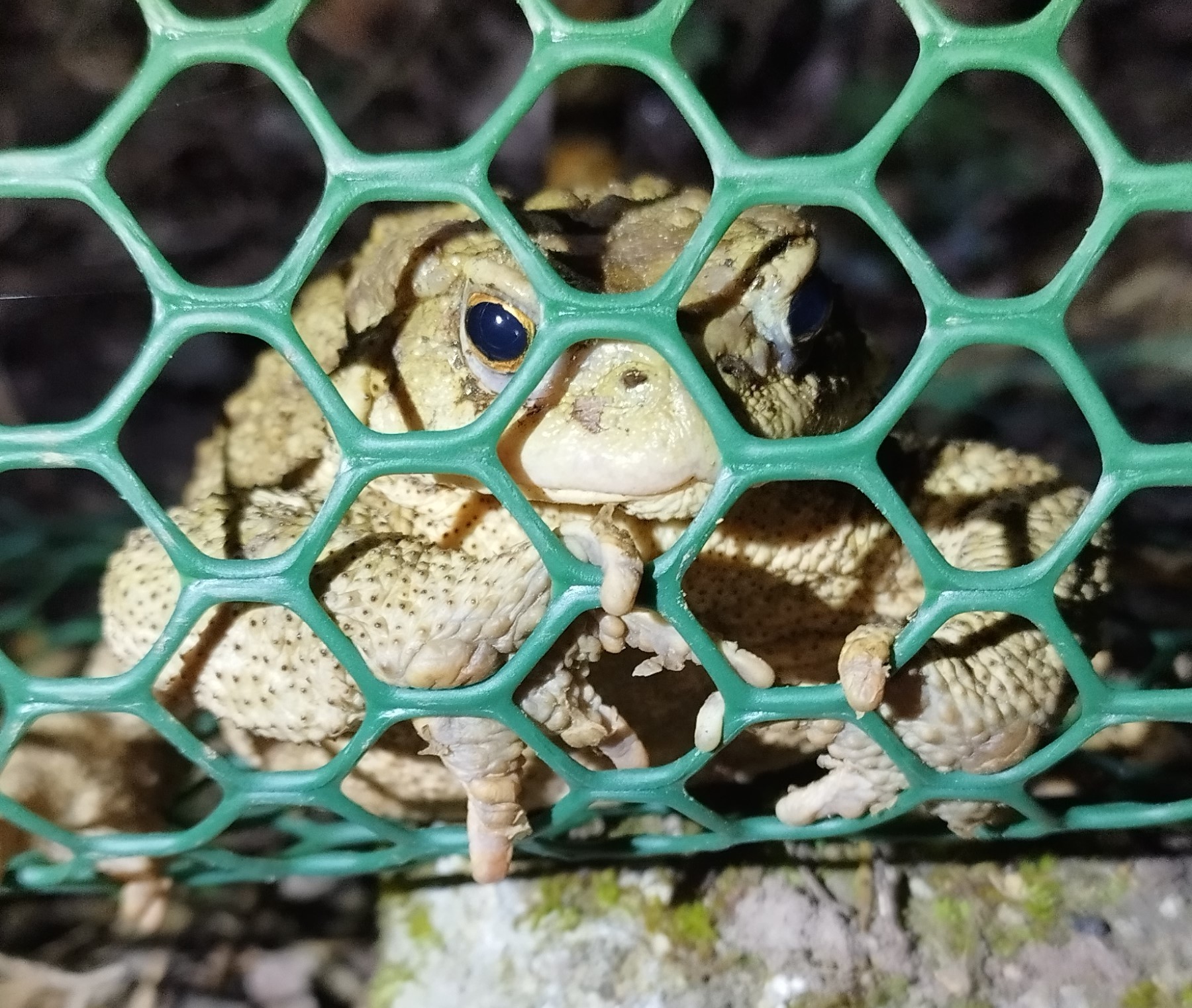 La novità più significativa è stata la chiusura notturna di via Grignetto nel tratto di strada che costeggia la palude dei Mareschi e dove da anni viene installato, con la collaborazione degli ecovolontari, il rospodotto per indirizzare gli anfibi verso i sottopassi che consentono l’attraversamento in sicurezza della carreggiata. Per un mese infatti, dal 16 febbraio al 17 marzo 2025, il Comune di Avigliana ha emesso un’ordinanza di divieto di transito dalle 20 alle 7 tra Borgata Grignetto e Borgata Dino. Quello è un importante punto di passaggio che collega il versante collinare dove i rospi trascorrono l’inverno e la palude dove si riproducono. La mattina del 12 febbraio, prima di installare le reti, da un conteggio empirico effettuato sulla sede stradale, i nostri guardiaparco hanno contato 51 rospi schiacciati dai pneumatici delle automobili durante la notte.