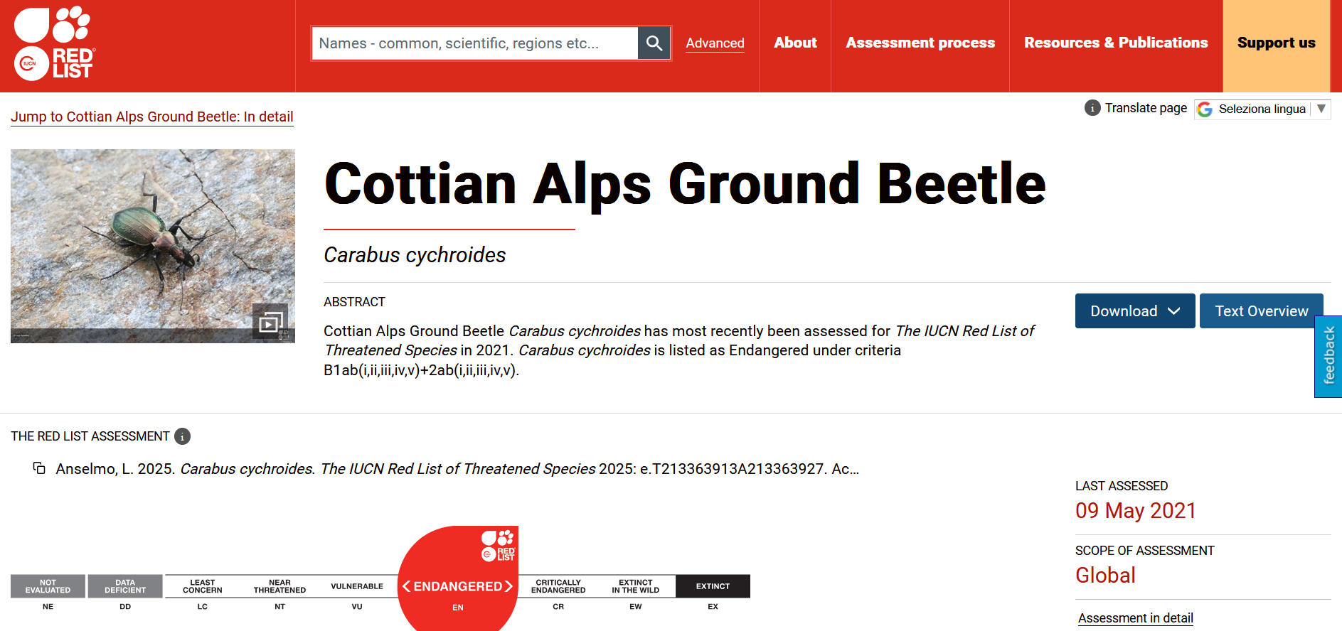 Per accedere alla scheda sul Carabo delle Alpi Cozie nel sito IUCN, cliccare qui.