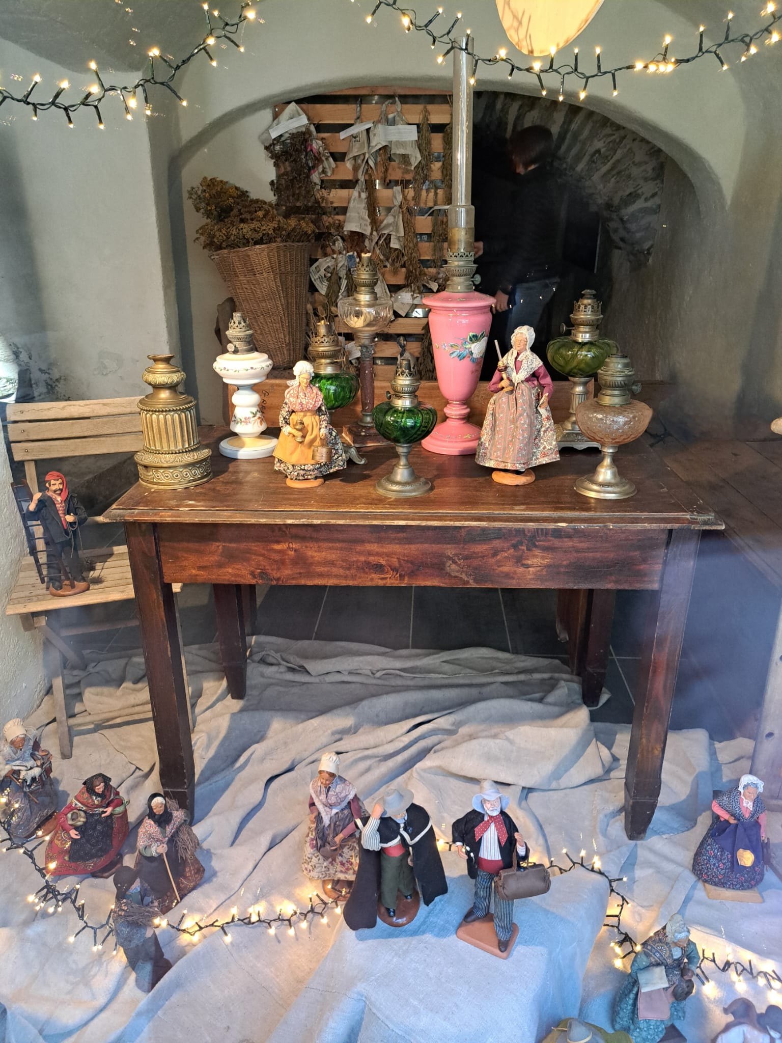 Nel cuore dell’oscurità invernale, Lucia diventava simbolicamente la portatrice di luce e speranza e illumina la vetrina dell'Hotel Dieu che dall'8 dicembre ospita anche il presepe, la crèche provenzale: realizzato con i classici Santons habillés, statue in argilla dai ricchi abiti in stoffa colorata impreziosite con accessori e oggetti di uso quotidiano in miniatura, che rappresentano i mestieri di un tempo e fanno parte della collezione privata di Dario e Rosalba Milesi.