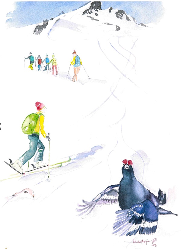 Quando si pratica lo sci fuoripista occorre tener conto del disturbo che si può causare agli animali selvatici: una fuga improvvisa rappresenta sempre un pericoloso dispendio di energie.