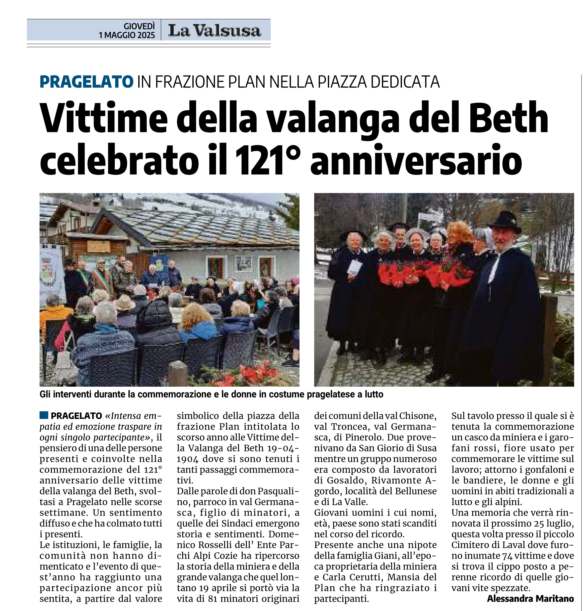 Vittime della valanga del Beth celebrato il 121° anniversario