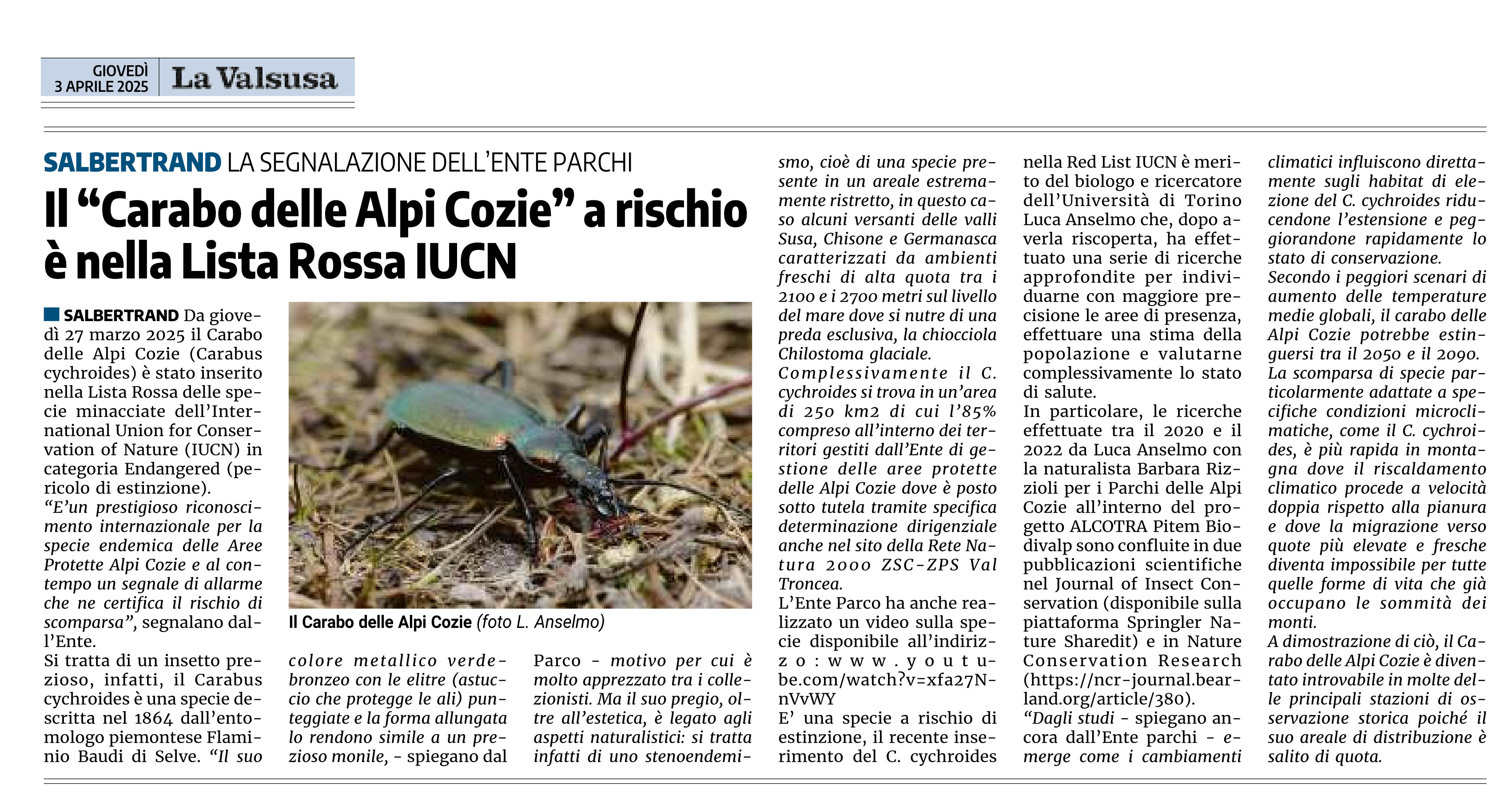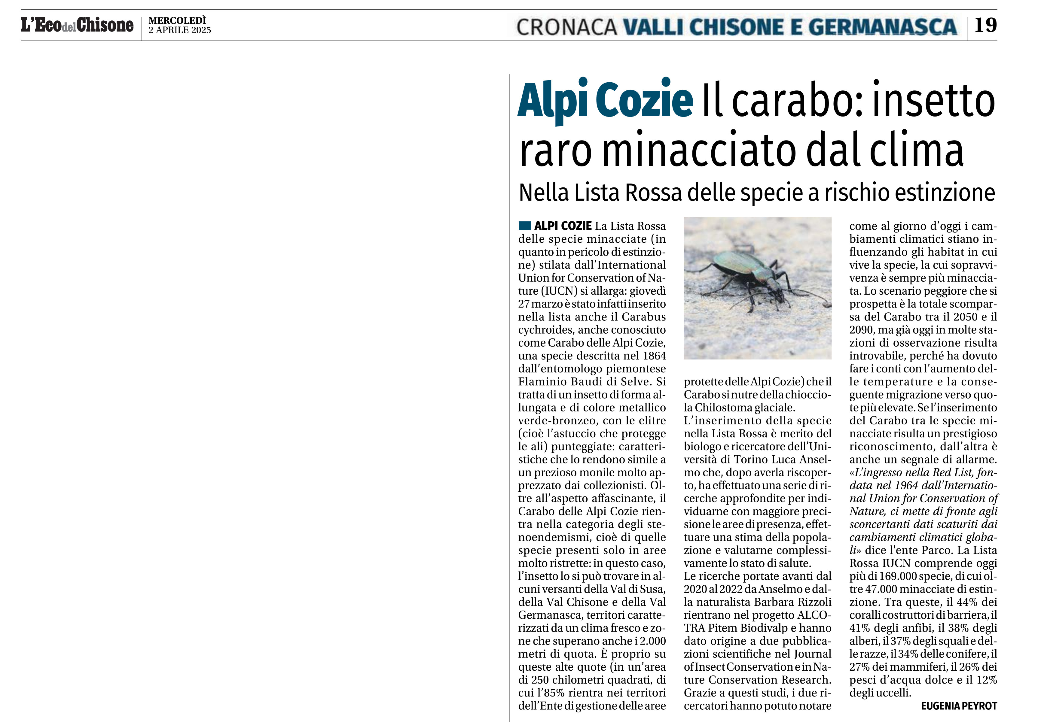 Il “Carabo delle Alpi Cozie” a rischio è nella Lista Rossa IUCN