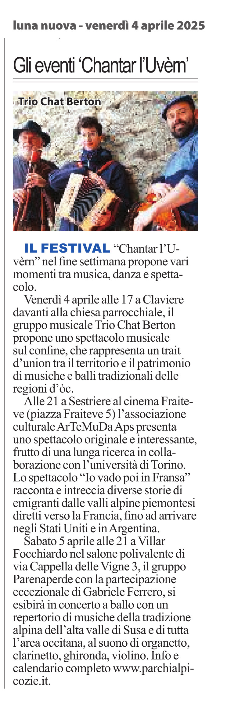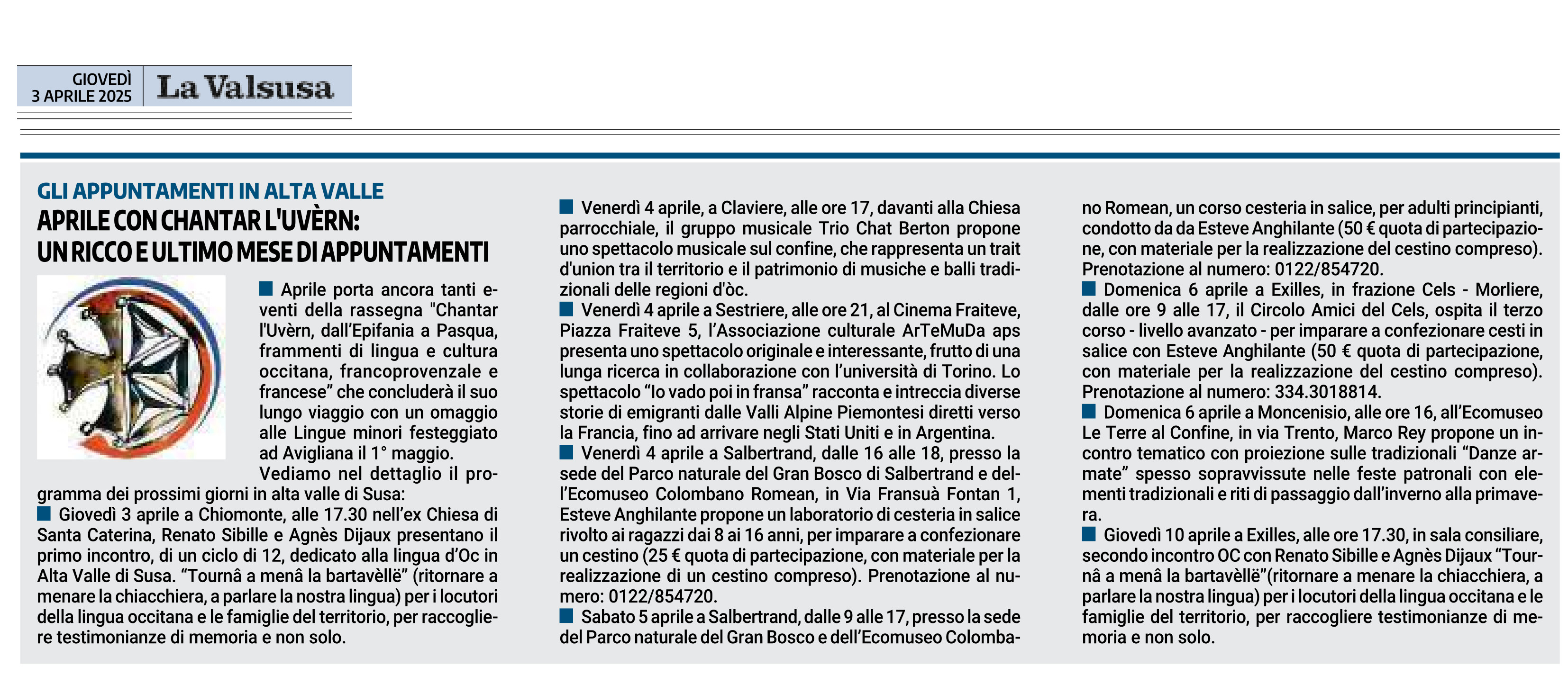 Aprile con Chantar l'Uvèrn: un ricco e ultimo mese di appuntamenti