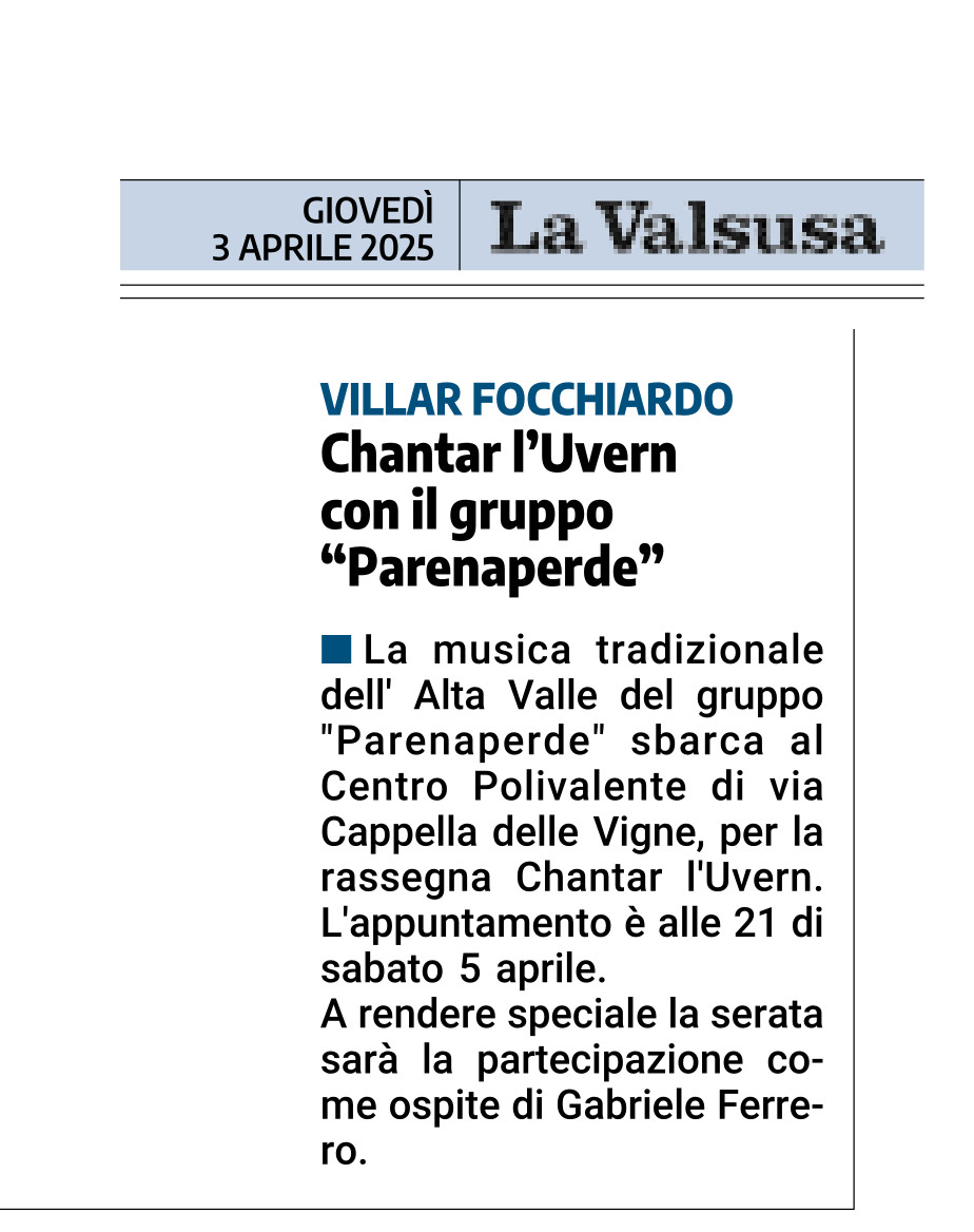 Chantar l’Uvern con il gruppo “Parenaperde”